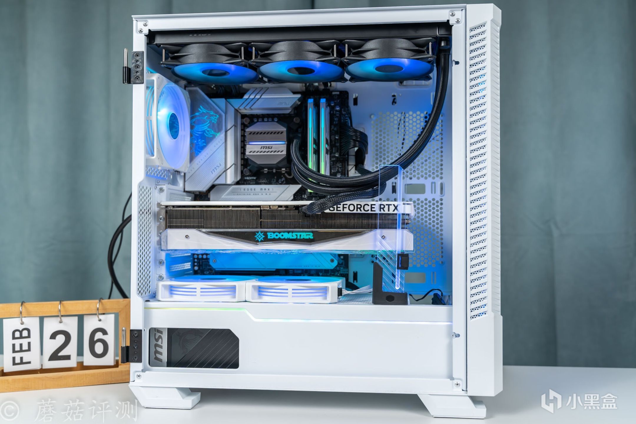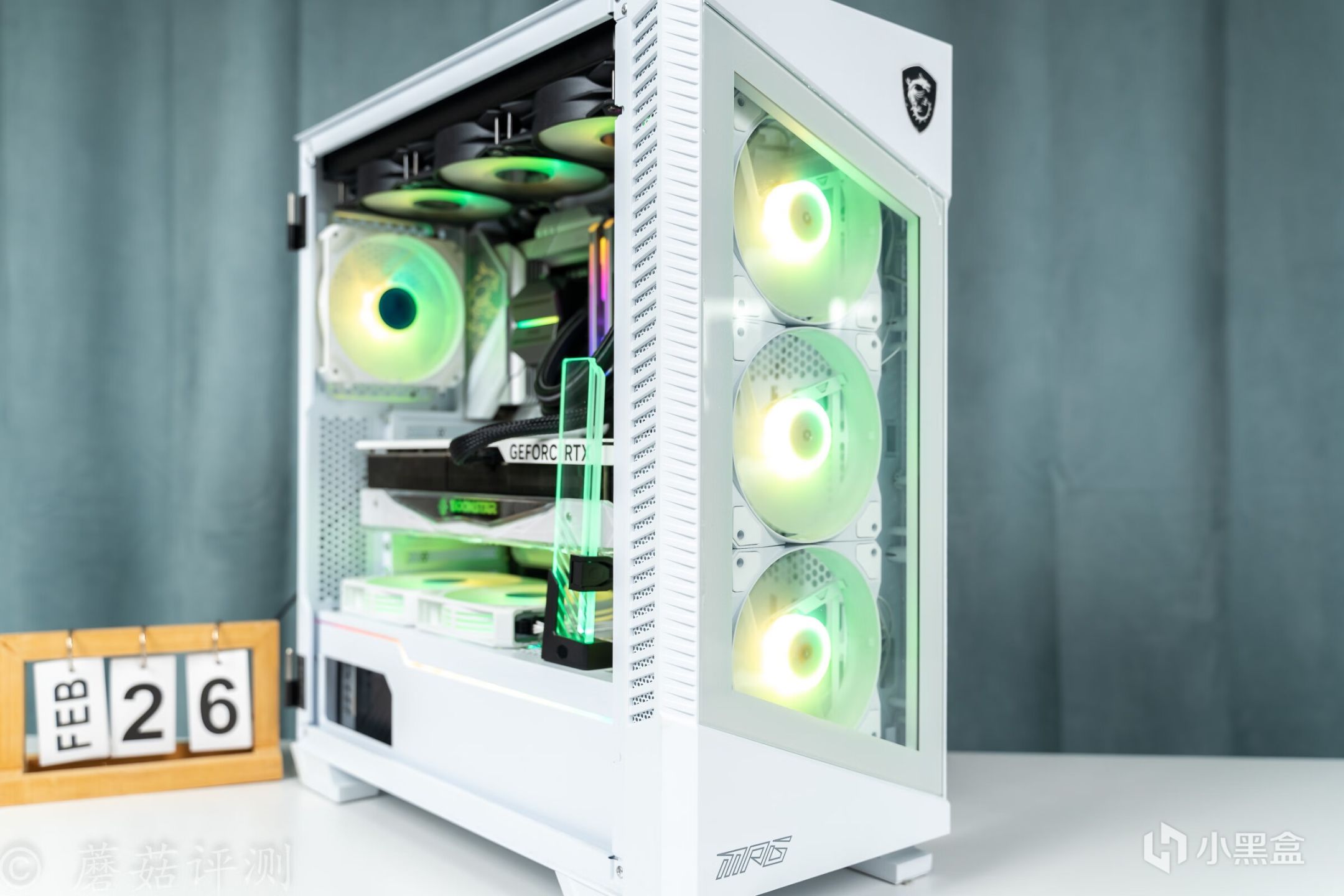 ▼机箱是微星的刀锋100R,白色版,这款机箱的前部采用白透的侧透玻璃设计,内部标配了三把白色的、支持ARGB灯效的风扇,搭配前部的白透玻璃,整体的颜值不错。