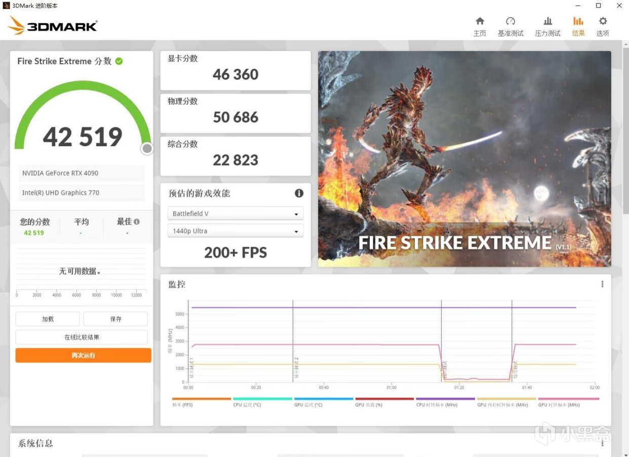▼跑个3Dmark的FSE测试,DX11下的2K分辨率测试,物理得分50686。