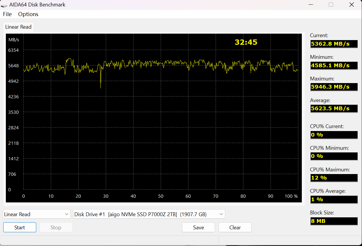而我对它做了个全盘读写,顺序读写速率也还是能维持在5GB/s以上。