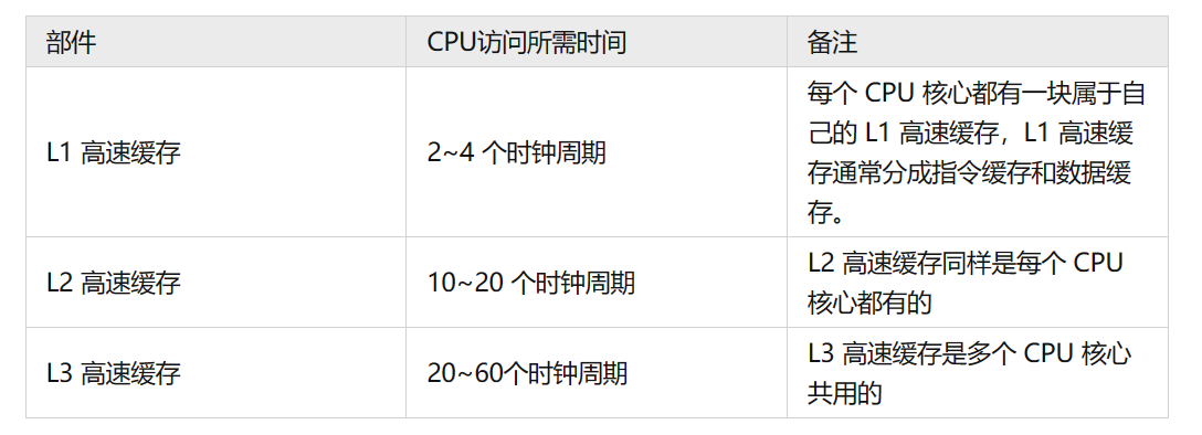 科普一下,为了弥补 CPU 与内存两者之间的性能差异, CPU 内部引入了CPU Cache,也称高速缓存。 CPU Cache用的是 SRAM(Static Random-Access Memory)的芯片,也叫静态随机存储器。其只要有电,数据就可以保持存在,而一旦断电,数据就会丢失。CPU Cache 通常分为大小不等的三级缓存,分别是 L1 Cache、L2 Cache 和 L3 Cache。