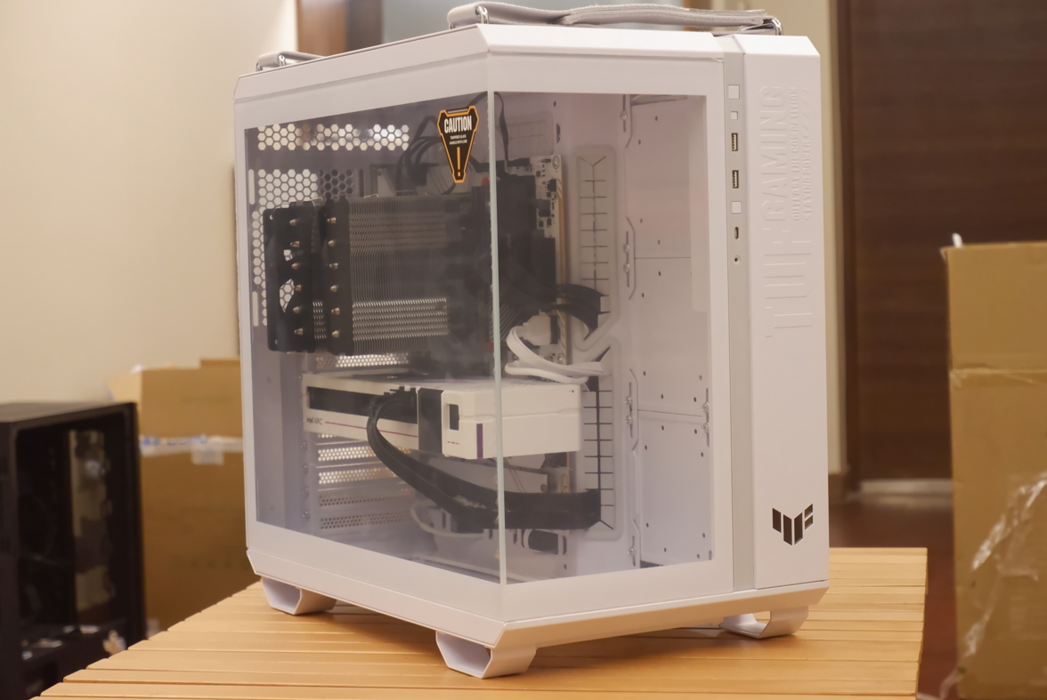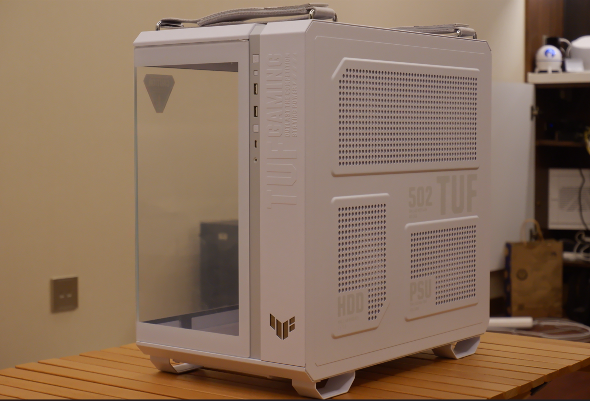 承载主板显卡的机箱还是用的ASUS 华硕 TUF GAMING GT502 弹药库机箱白色 无界版。