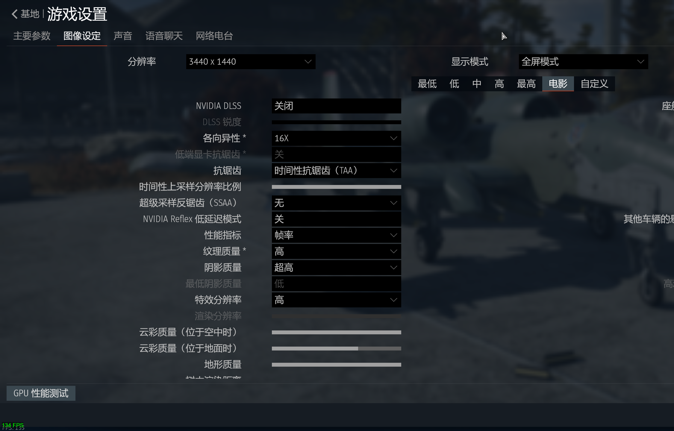 输出分辨率3440X1440,算是两个2k屏幕并排输出吧,所有的特效都拉到满,这样的情况下,战雷的输出帧率能稳定在120FPS,适配我的高刷新屏幕算是刚刚好。