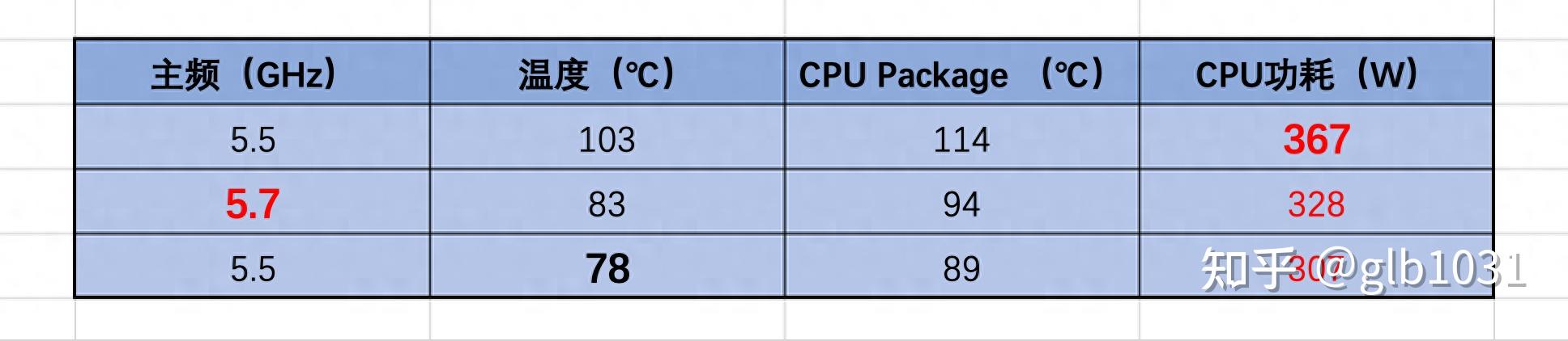 可能看上面的截图会感觉有点混乱,这里做了一个数据汇总图标给大家参考。可以看到这颗i9 14900K 的烤鸡满载功耗都达到了300W 以上,在这样的功耗下给到龙神 III代的压力还是不小的。建议有能力的玩家还是手动尝试调节看看,因为通过我的测试也可以看到在调整后的14700K 处理器功耗在330W 时处理器温度都有明显的下降,14900K 的最高睿频也保持在了5.7GHz。