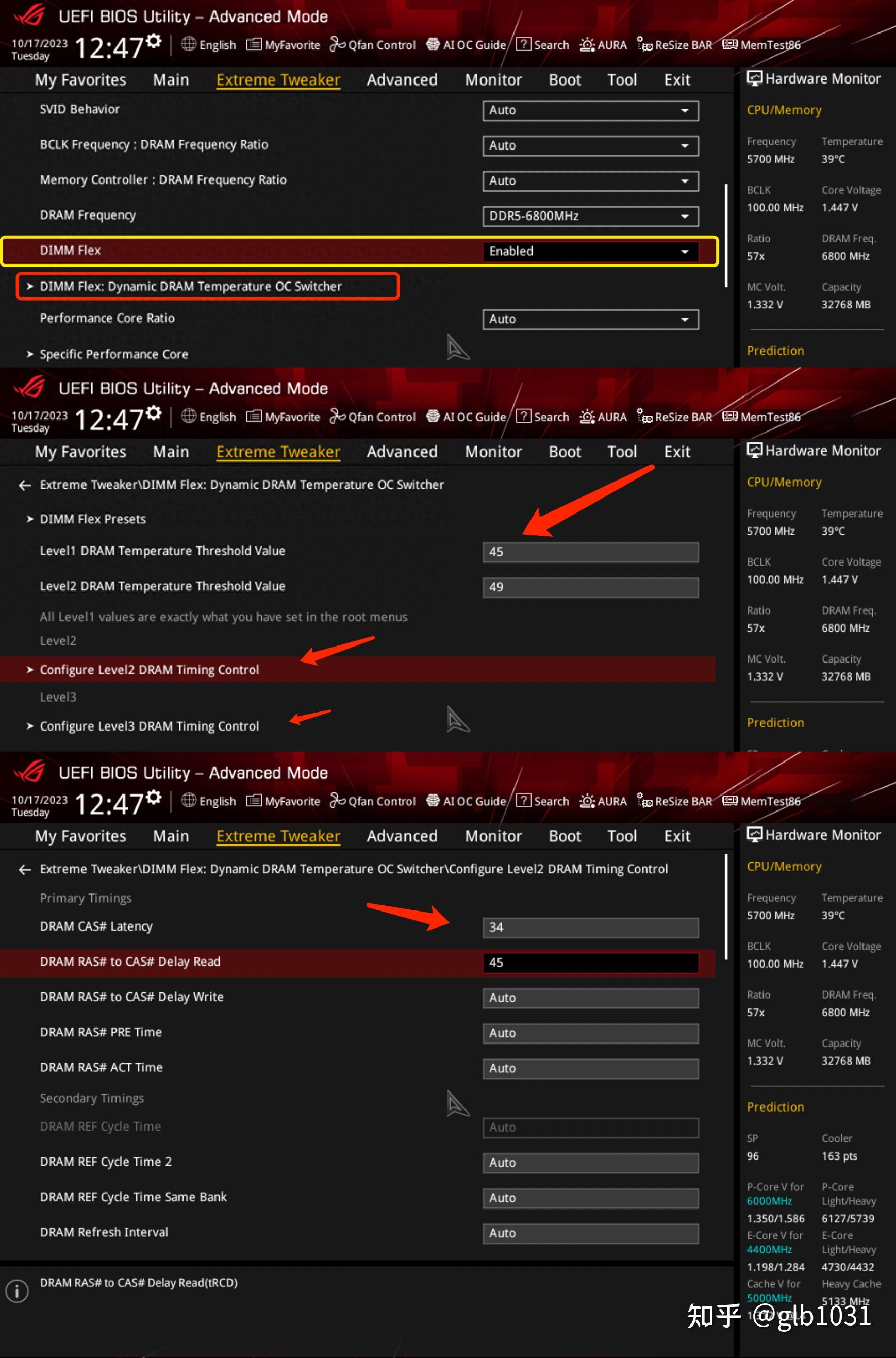 这次华硕Z790 DARKHERO 主板也加入了DIMM Flex 功能,可以主动监控内存温度,提供了三档的tRFC以及tREFi 值调节。这样就可以在内存低温的时候实现内存性能的最大化,而在高温的情况下帮助内存运行稳定不报错的功能。这个功能我理解就类似于XMP 会有三种模式,会跟进内存温度的不同来调整不同的内存时序策略,类似CPU 的睿频吧。