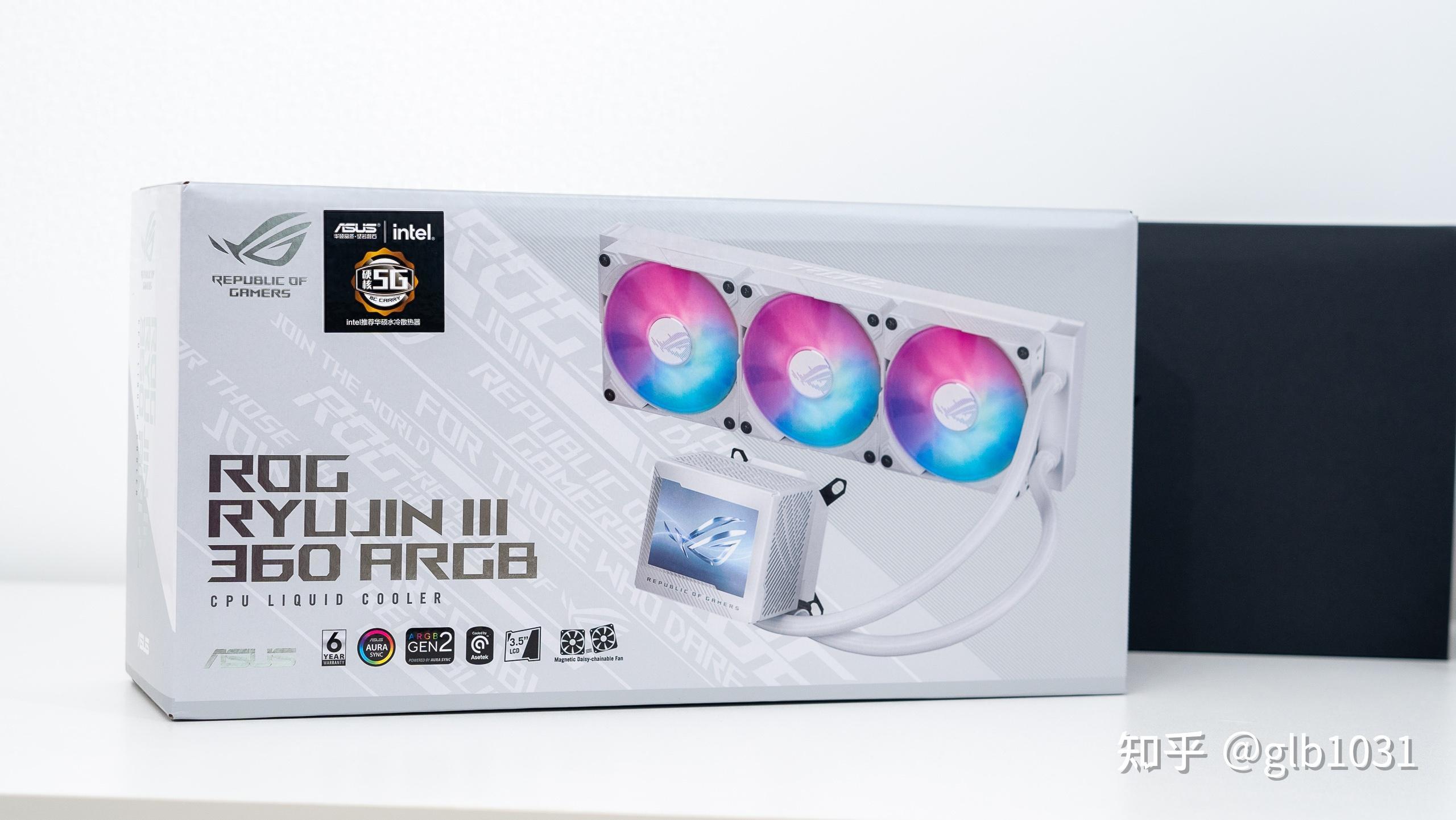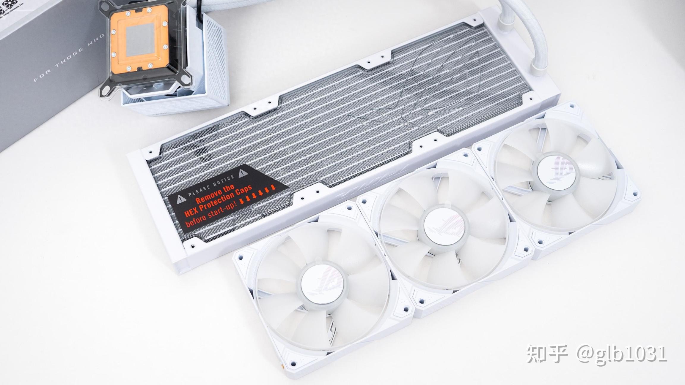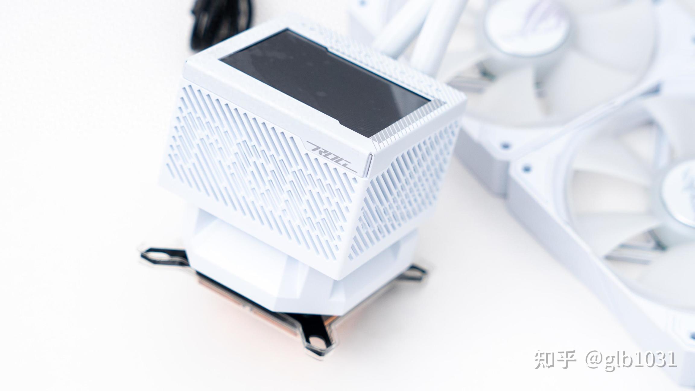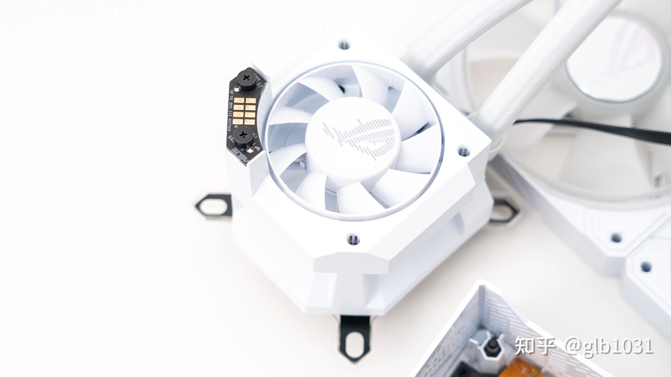 散热方面为了保证散热效果,测试的散热器为华硕 ROG 顶级的龙神 III 白色版本,这也是华硕ROG 系列旗下定位最高的一体式水冷散热器了,采用Asetek 八代水泵设计,黑色版本还有提供猫头鹰风扇的定制版本可选。而白色的版本则是搭配了磁吸设计的ARGB 风扇版本。白色版本就连包装都不同于华硕经典的黑红设计,全白的包装看上去有些小清新的感觉。