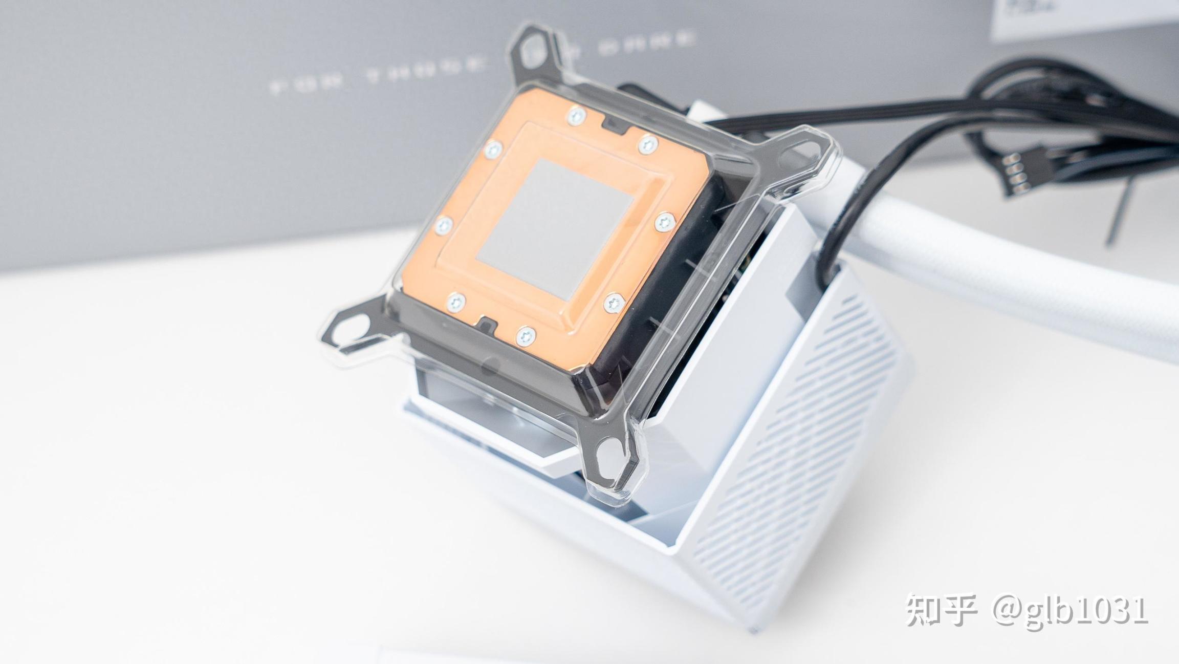 此外在冷头内部还增加了一颗风扇来帮助散热,内置第八代 Asetek 水泵采用三相电机,提供更高的流量和更低噪音,强化散热性能,搭配更大尺寸底座,为新一代 Intel 处理器提供更高的散热效率。
