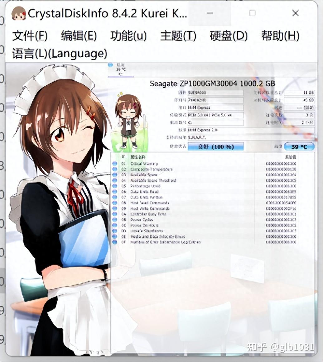 存储方面升级后的华硕Z790 DARKHERO终于给补上了在HERO上所没有的板载PCIe 5.0 M.2 SSD插槽,这里也准备了希捷酷玩 540 PCIe 5.0 SSD 来做主板的PCIe 5.0 SSD 读写测试。通过CrytalDiskinfo 软件可以看到希捷酷玩 540 PCIe 5.0 SSD 1TB的版本基本信息,PCIe 5.0 × 4 NVMe 2.0标准的传输模式,容量为1000.2 GB ,运行温度为39℃。之前担心PCIe 5.0 SSD的发热问题,可以看到在搭配了利民的HR-10 Pro SSD 散热器后PCIe 5.0 SSD 的温度得到了很好的控制。