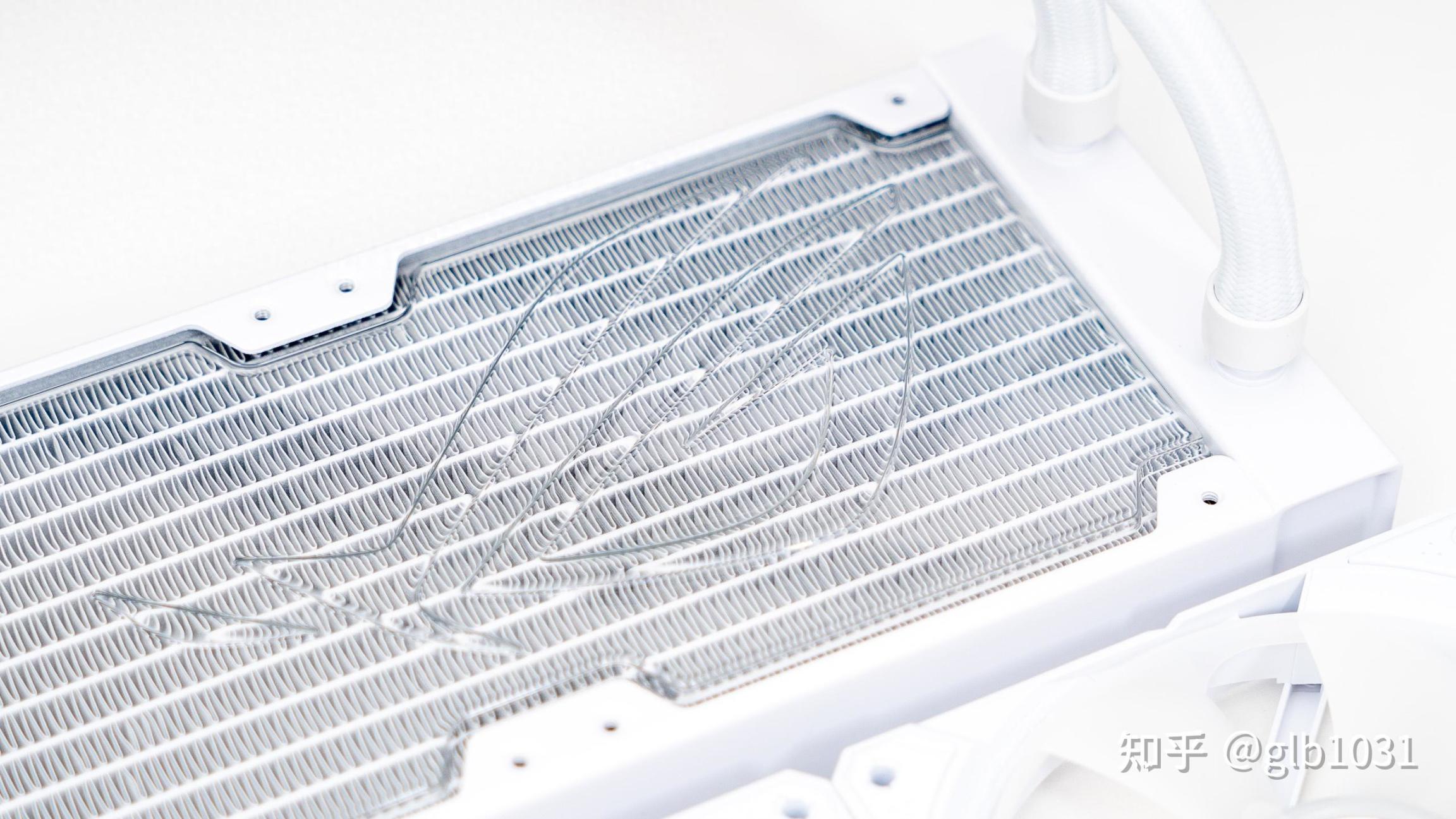 冷排做工质感不错,内部采用了12条水道设计。鳍片间距适中,水头冷管接口都做了加固设计。