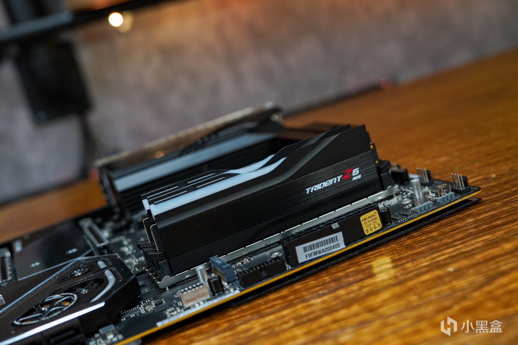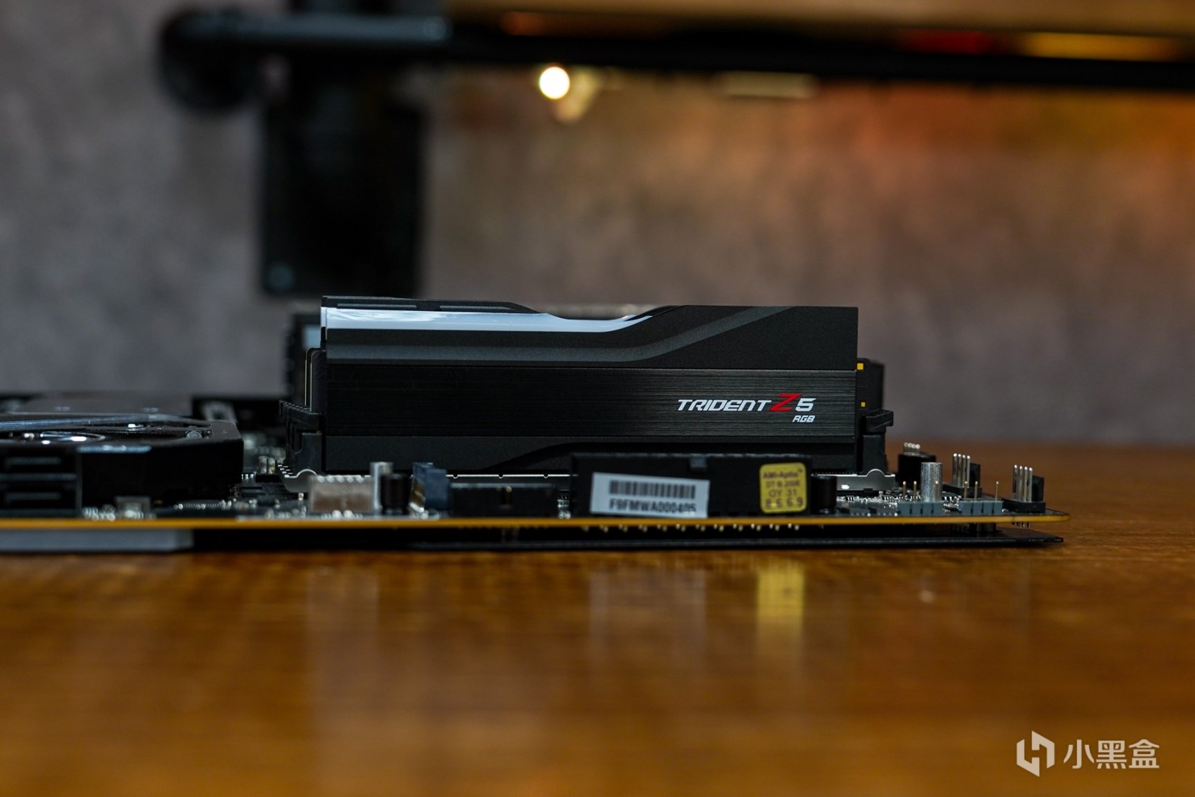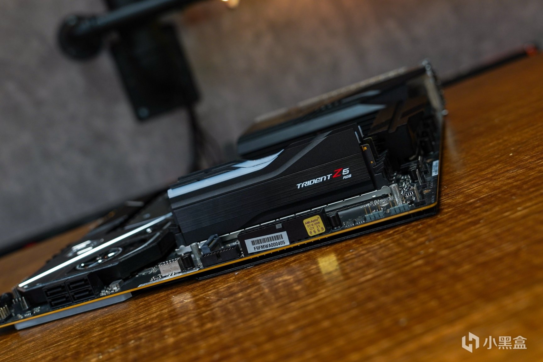 内存:芝奇焰光戟 AMD EXPO DDR5 6000 16*2 C30暗雾黑内存。在外观造型上也是符合这套主机的搭配。