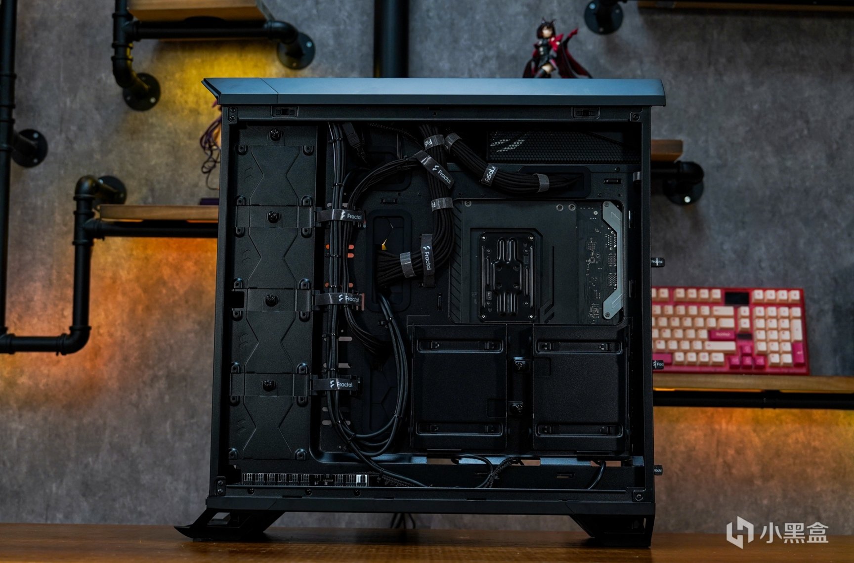 在背线方面因为背线舱采用了线夹设计,可以轻松布置背线的走线设置,预留的背线空间是完全应付不同类型线材,不管是某些粗硬长的原装线,还是较细的定制线材都可以轻松走出美观整齐的背线效果。