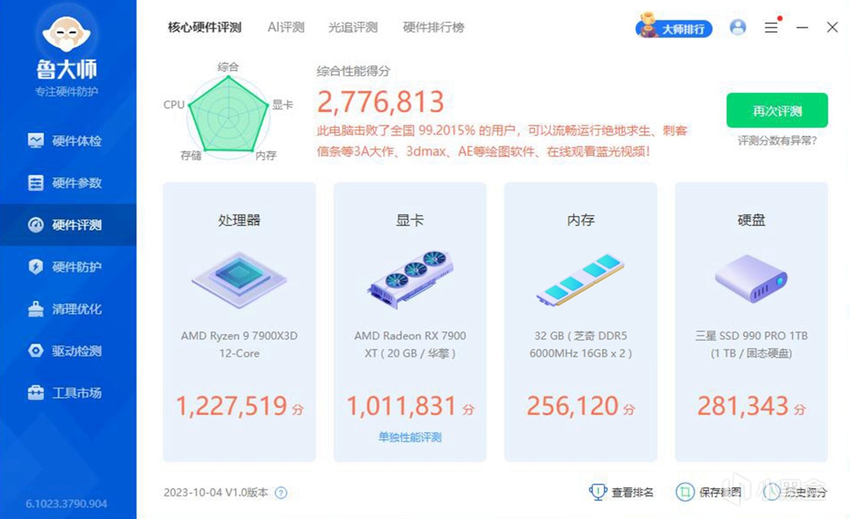 固态:三星990PRO 1Tb PCIe4.0 M.2 SSD。