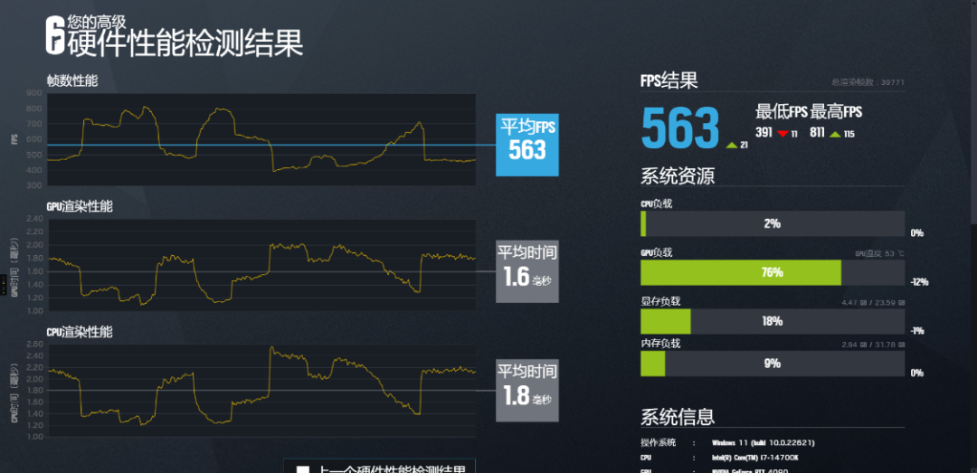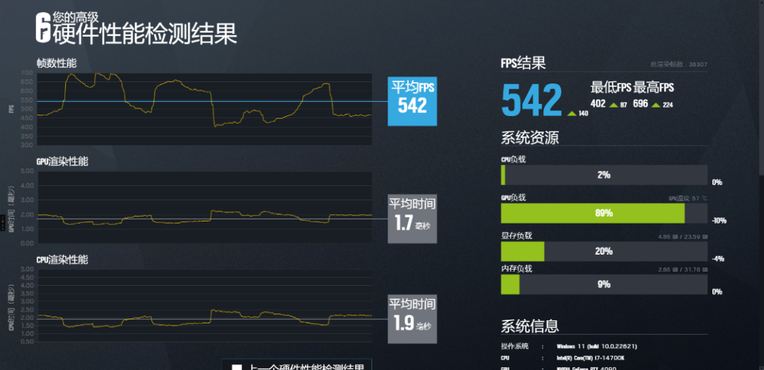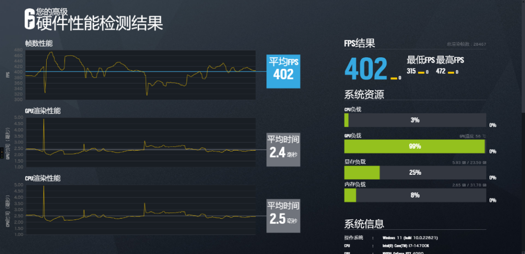 《彩虹六号·围攻》基准测试,画质超高,渲染比例50%,4K分辨率下,游戏平均帧率为402FPS。2K分辨率下,游戏平均帧率为542FPS。1080P分辨率下,游戏平均帧率为563FPS;