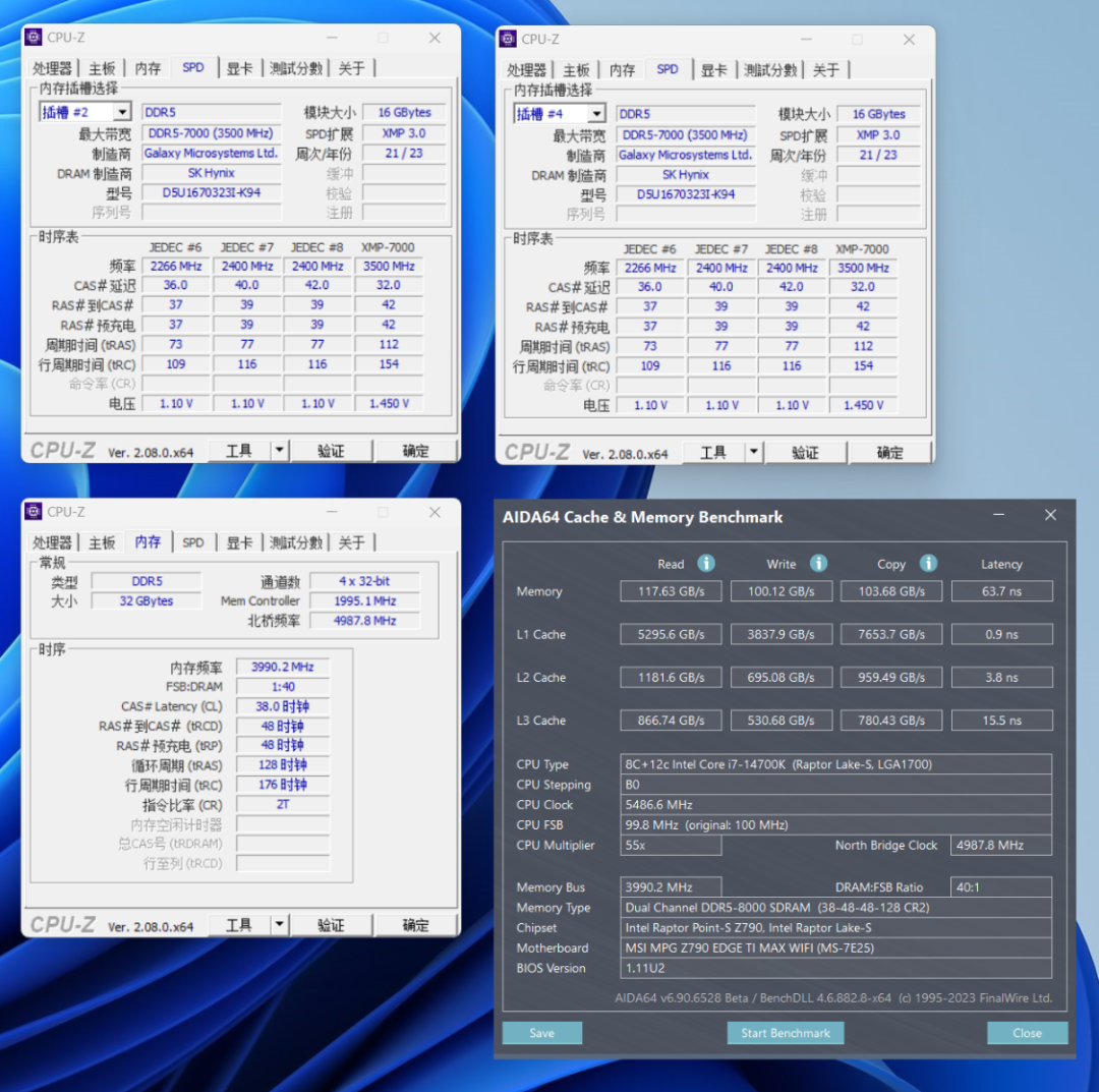 内存方面,基本已经迎来了D5的高速发展时期,为了更好的体验全新硬件的性能,咱直接选配的是HOF Classic D5-7000MHz 16G*2内存,实测可以直接拉到8000MHz。