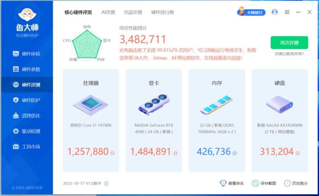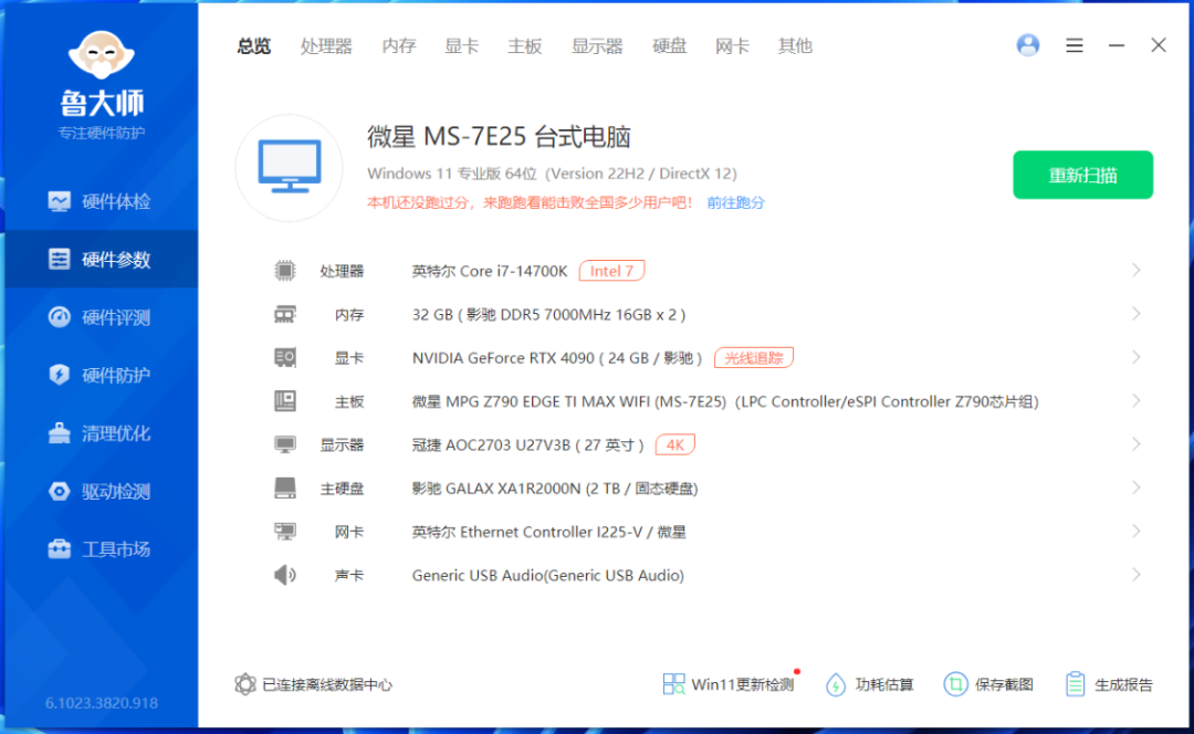 完整配置:Intel i7-14700K、微星MPG Z790 EDGE TI MAX WIFI主板、影驰RTX 4090 星曜OC显卡、HOF Classic D5-7000MHz 16G*2内存、星曜X4 Pro 2T M.2固态硬盘、影驰 480白色一体式水冷、HOF OC ONE 白色全塔机箱、HOF GH-1300 白金全模组电源、铠F3 星曜积木风扇*16…