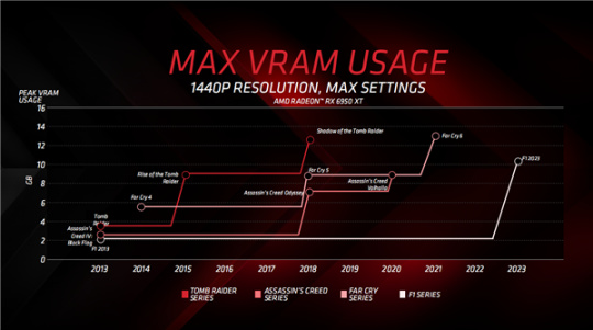 说到显存,AMD也以上代旗舰RX 6950 XT 16GB为例进行了详细的分析。