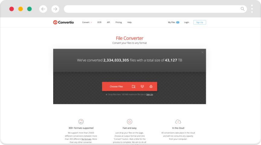 CloudConvert頁面簡潔,可以無需登錄下載轉換好的格式,除了本地導入,還支持通過URL、Google Drive、Dropbox以及OneDrive導入文件進行轉換。