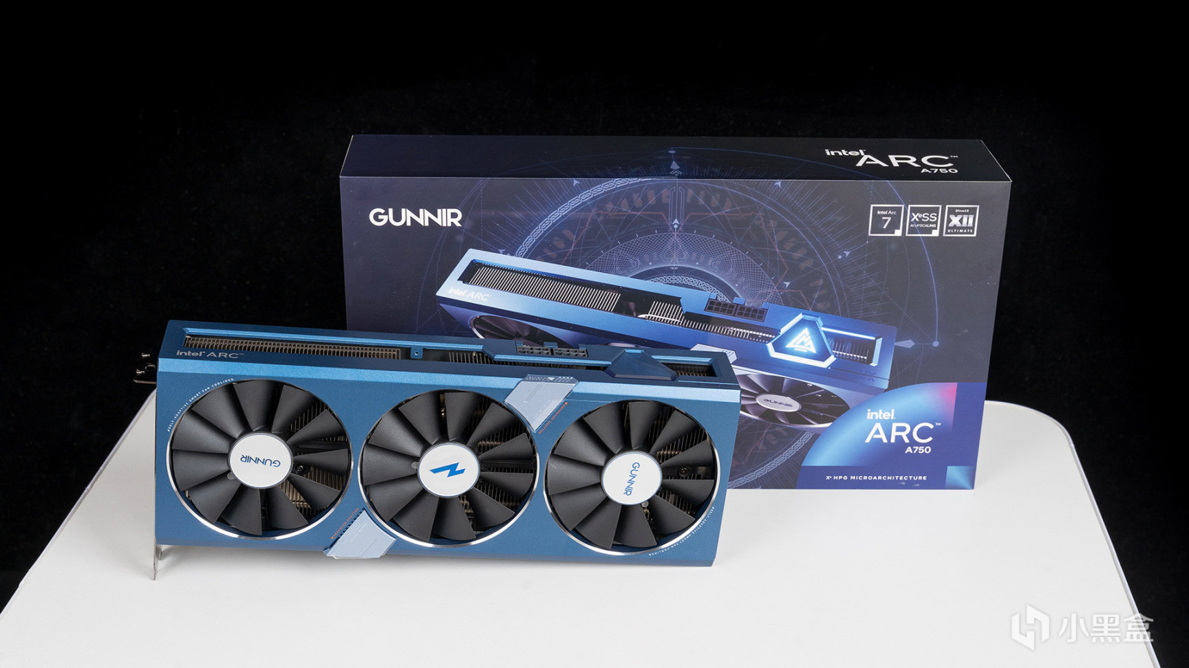 GUNNIR(中文名爲藍戟)是英特爾首家核心合作伙伴,品牌雖然很年輕,但早在DG1獨顯時代GUNNIR就已經爲英特爾接管試刀了,自然技術和研發是有一定沉澱的,這次上手的是GUNNIR最新的FLUX影系列——GUNNIR Intel Arc A750 FLUX 8G OC顯卡(以下簡稱GUNNIR Arc A750 FLUX),其包裝盒小而精,上面有一些顯卡的基本信息介紹。