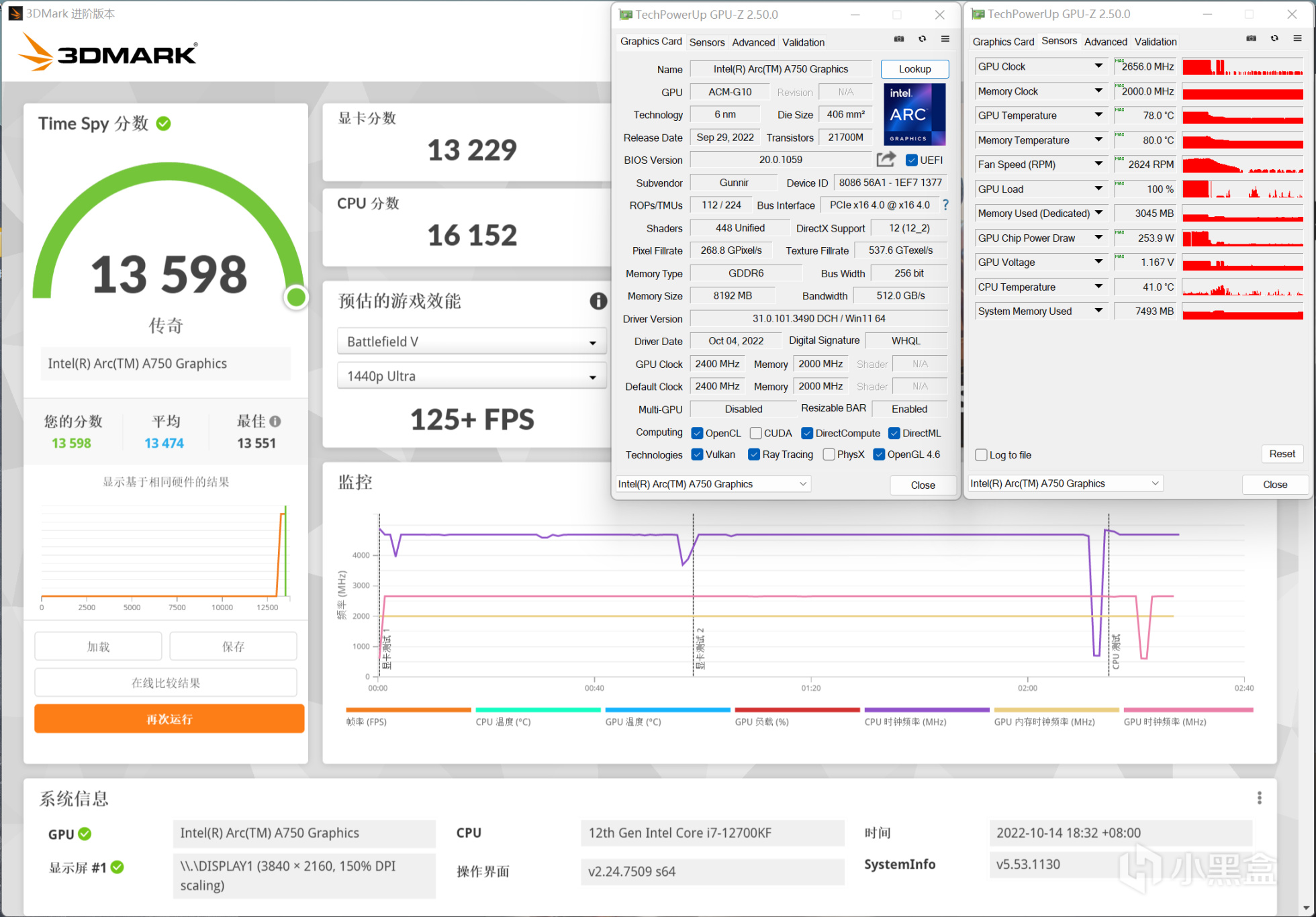 GUNNIR Arc A750 FLUX 1080P平均幀率75fps,2K平均幀率60fps