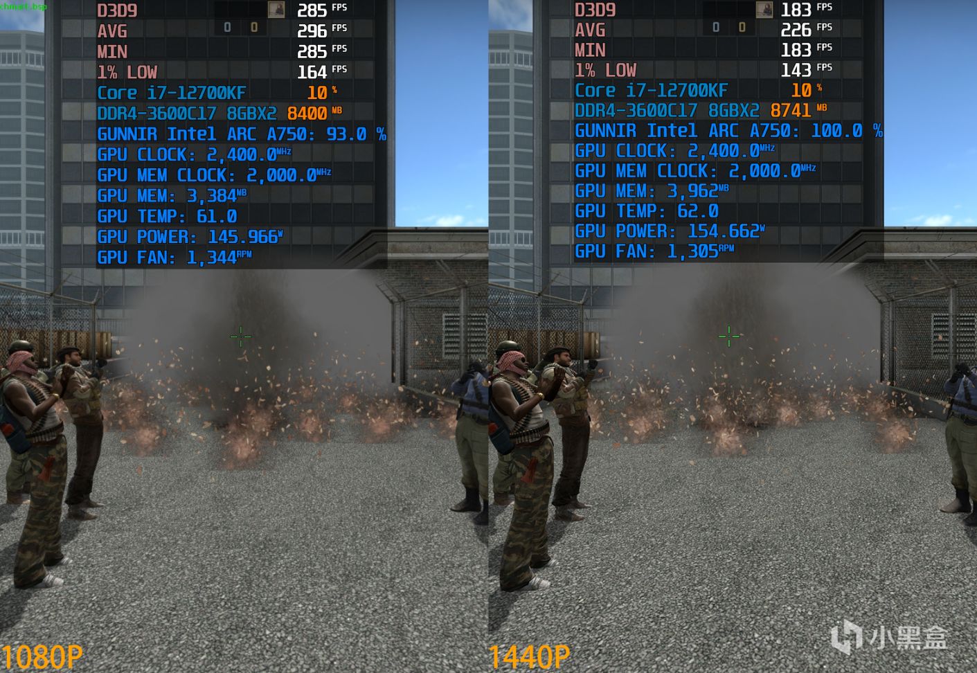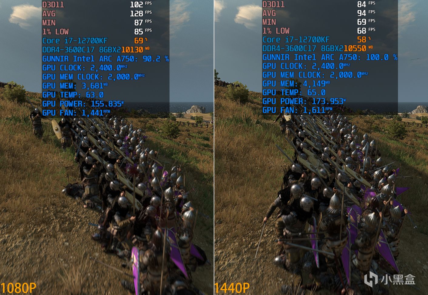 GUNNIR Arc A750 FLUX 1080P平均幀率128fps,2K平均幀率94fps,運行良好