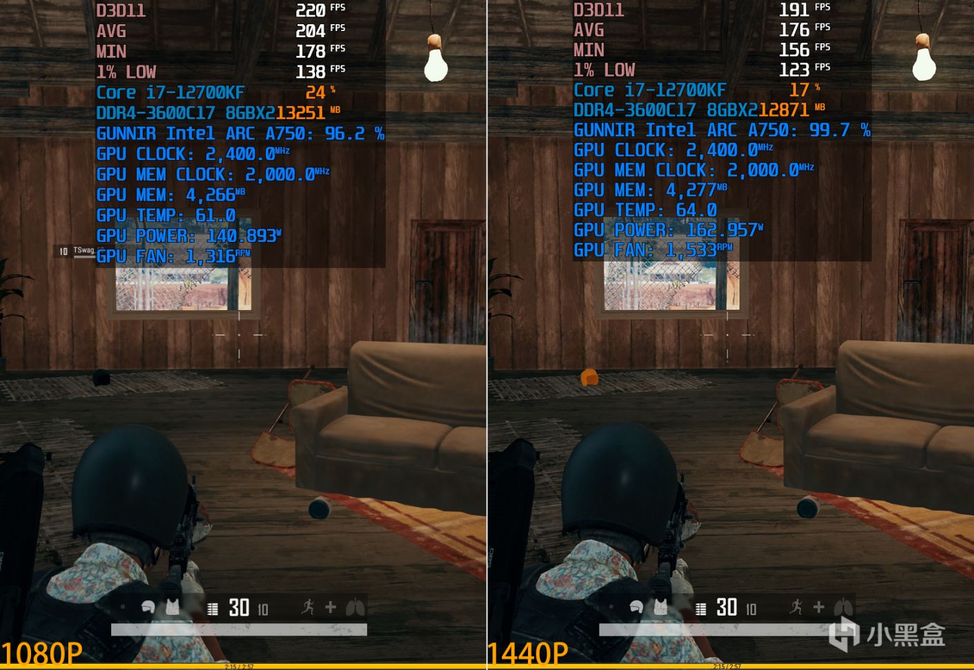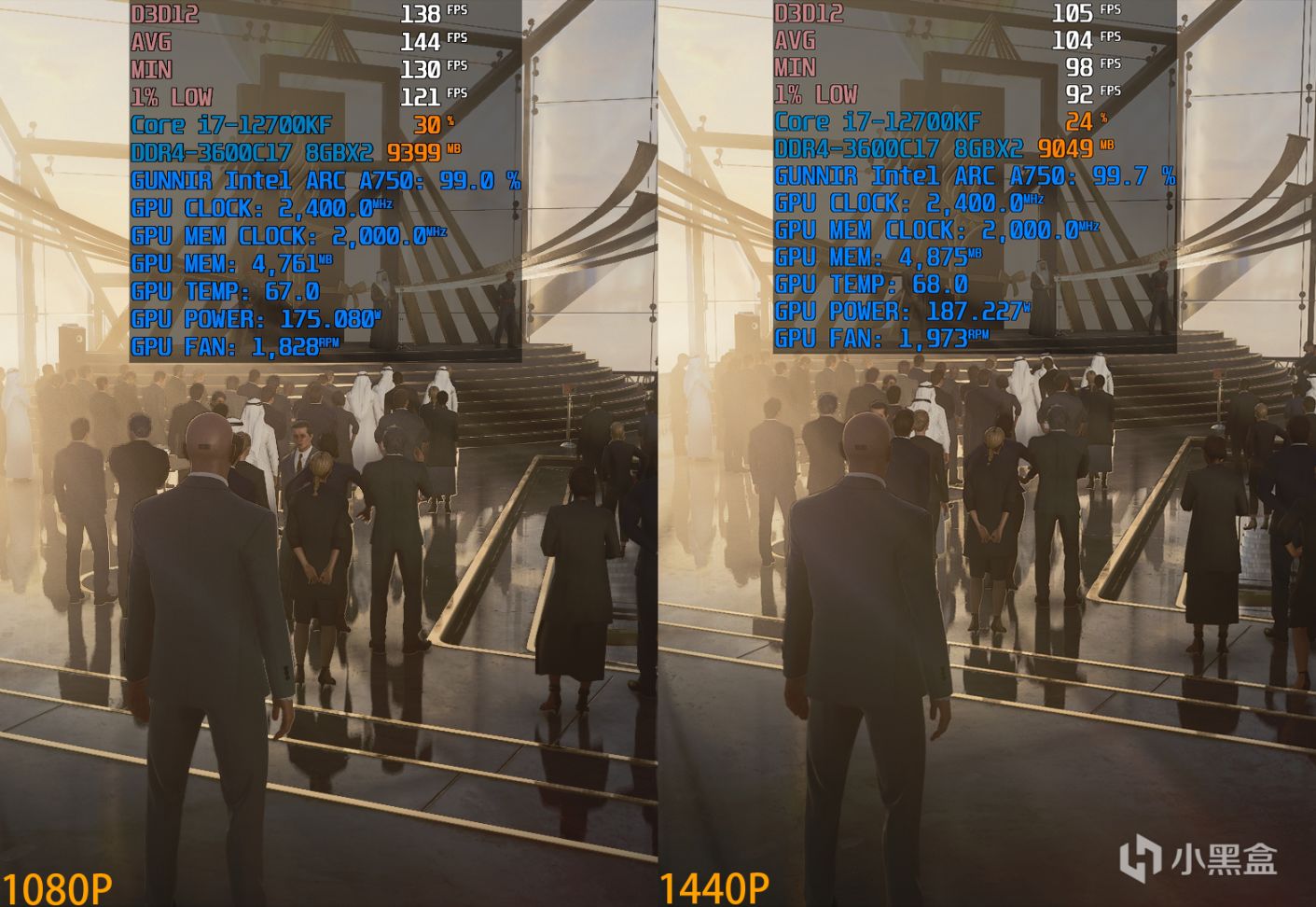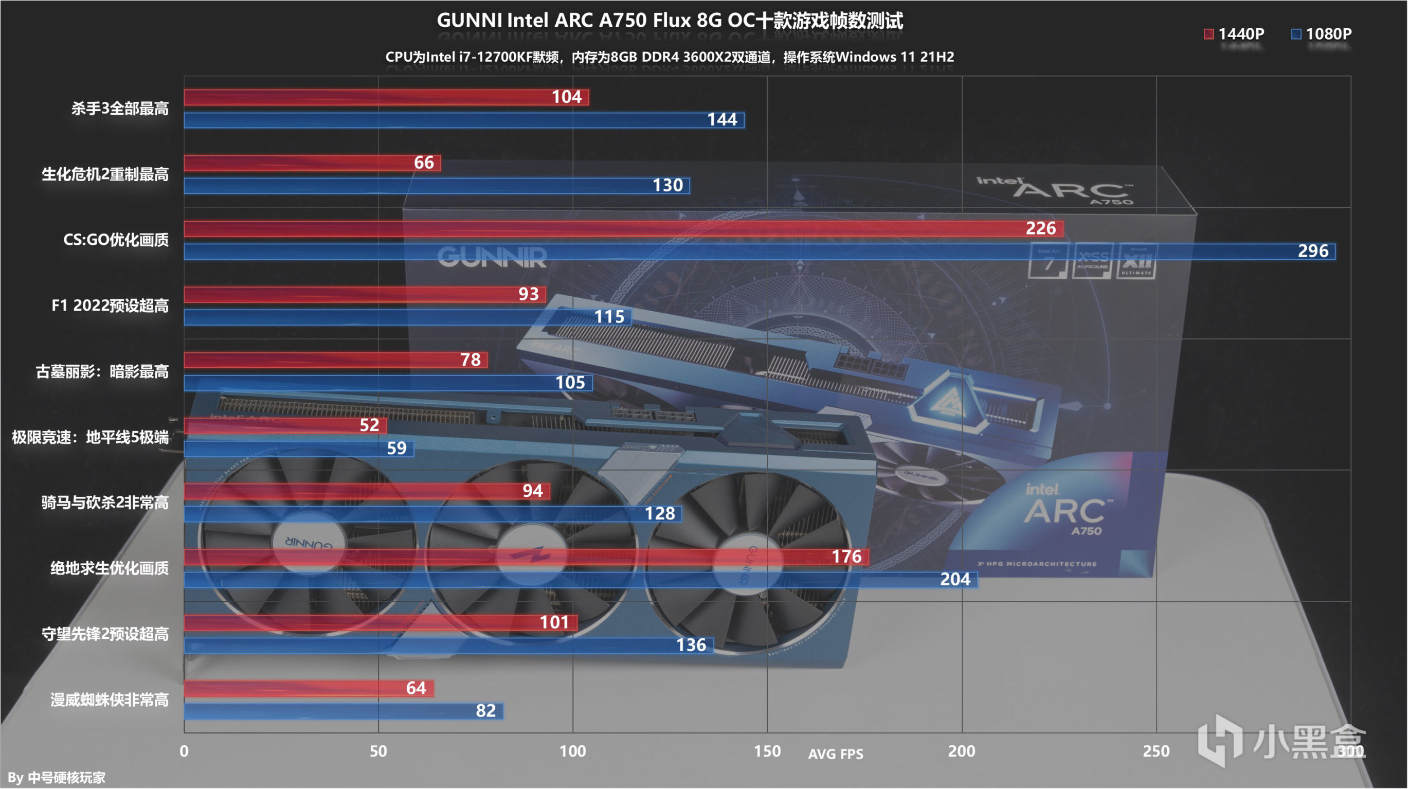 GUNNIR Arc A750 FLUX 1080P平均幀率144fps,2K平均幀率104fps,運行良好