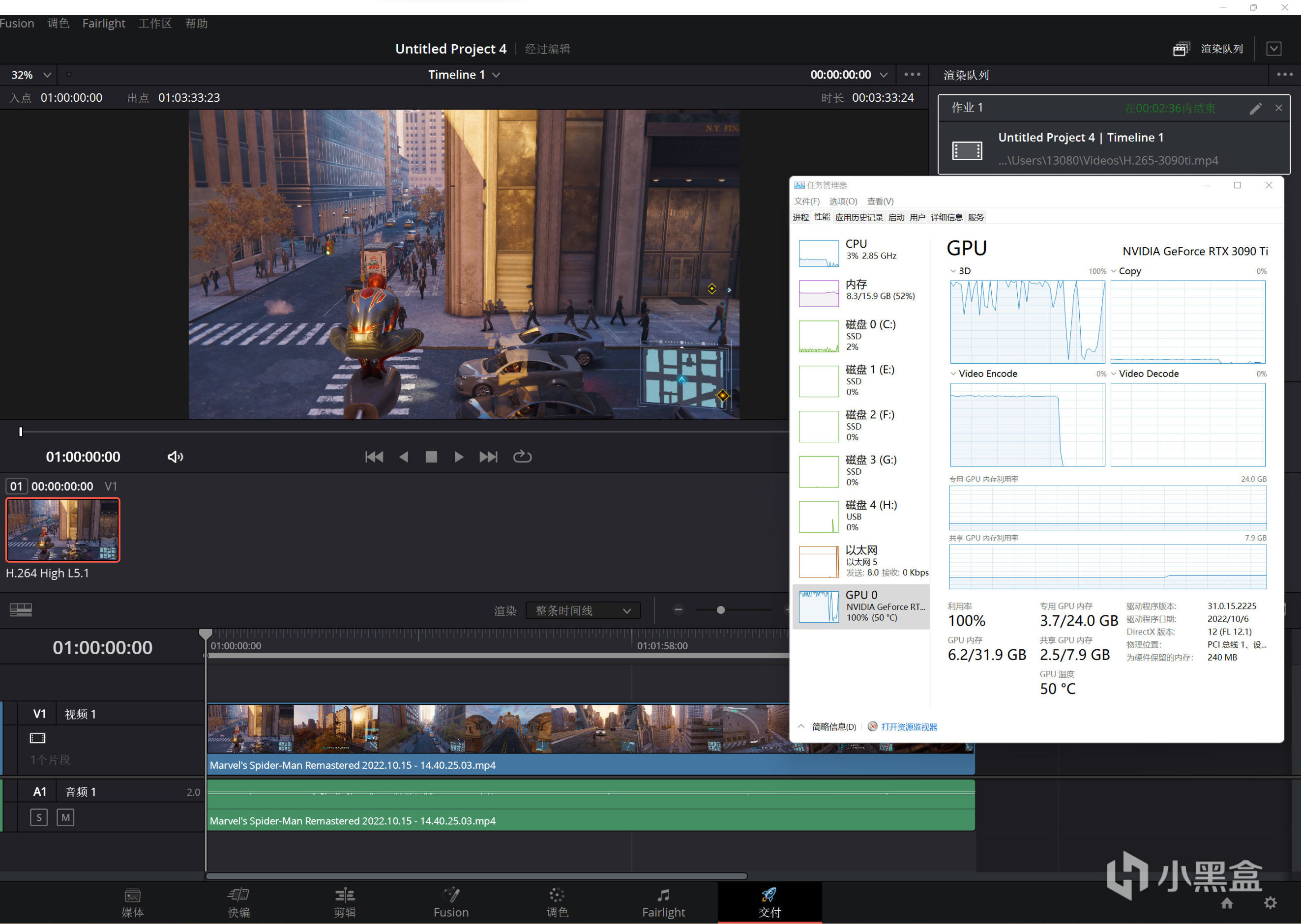 RTX 3090 Ti對100Mbps的4K視頻轉碼,使用HEVC編碼完成時間需2分36秒