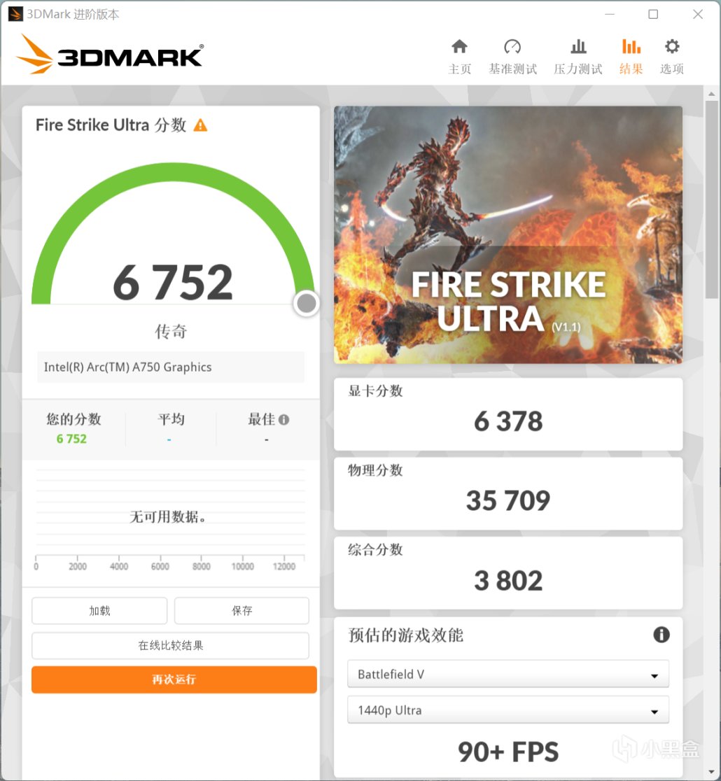 GUNNIR Arc A750 FLUX 3DMARK Fire Strike Ultra顯卡分數爲6378