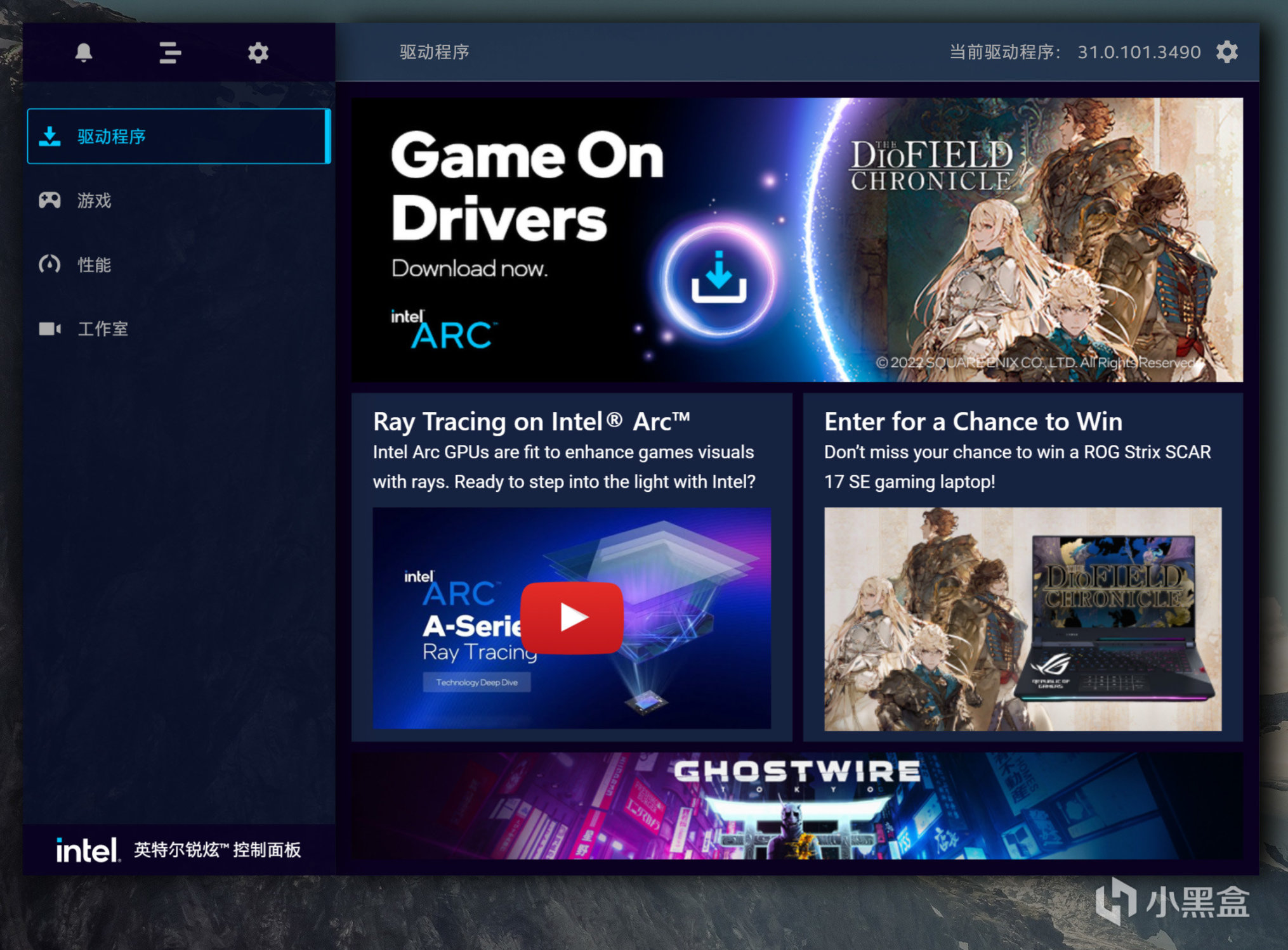 安裝英特爾驅動時會綁定Arc Control(銳炫控制面板)軟件,這款軟件就是針對Arc系列顯卡設計的,整體界面簡潔大方,主要有性能監測、更新顯卡驅動、錄屏和直播等實用性功能,尤其是錄屏設置很齊全,加上Arc系列超強編解碼的能力,使用起來挺方便和貼心的。