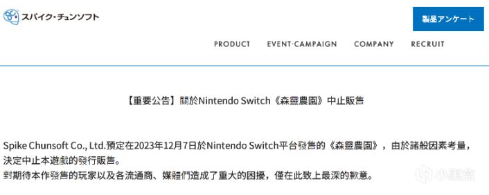 发行商Spike Chunsoft宣布,原计划12月7日推出的《森灵农园/Fae Farm》Switch中文、日文版中止发售计划。(此前发售的英文版支持中文)