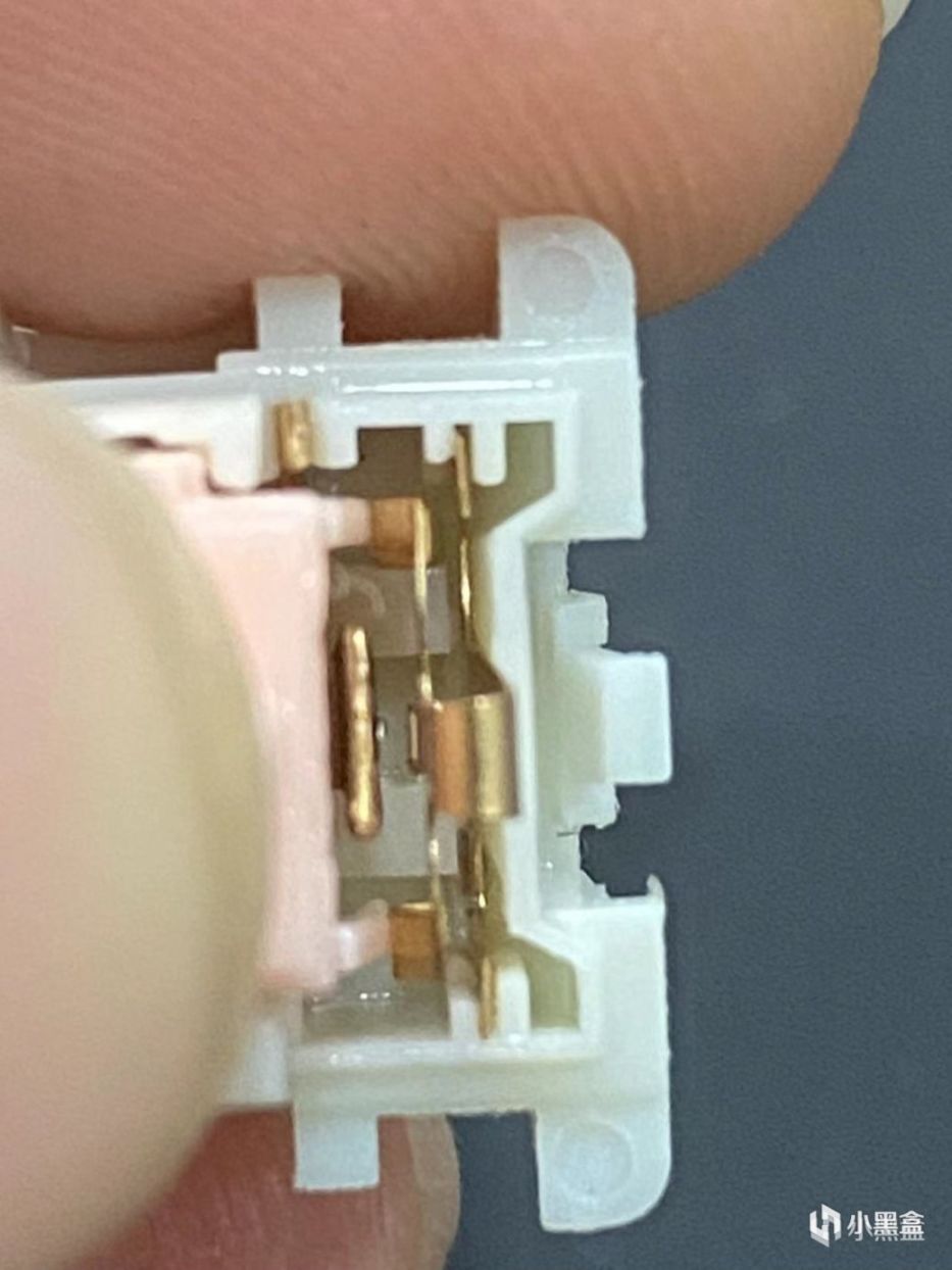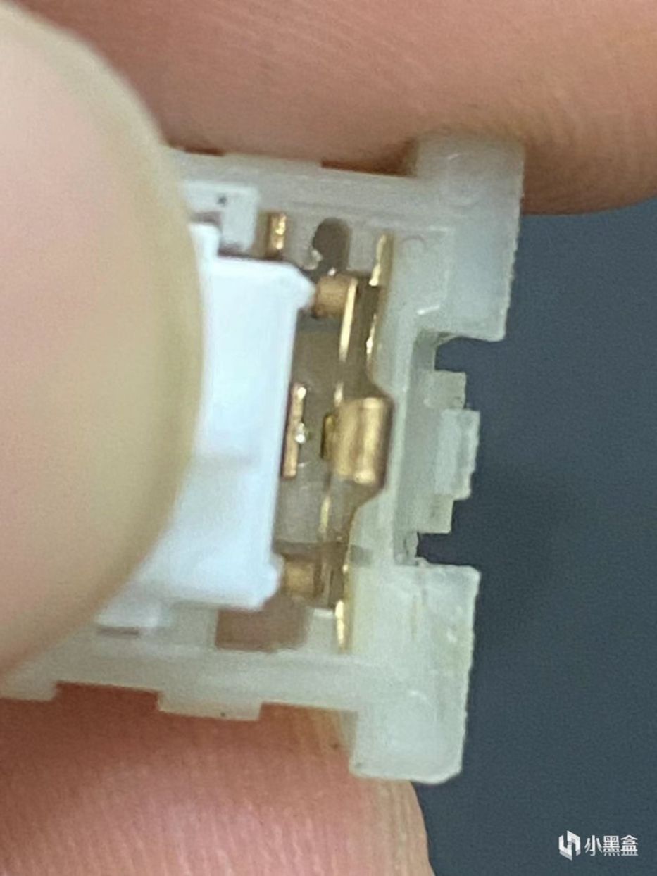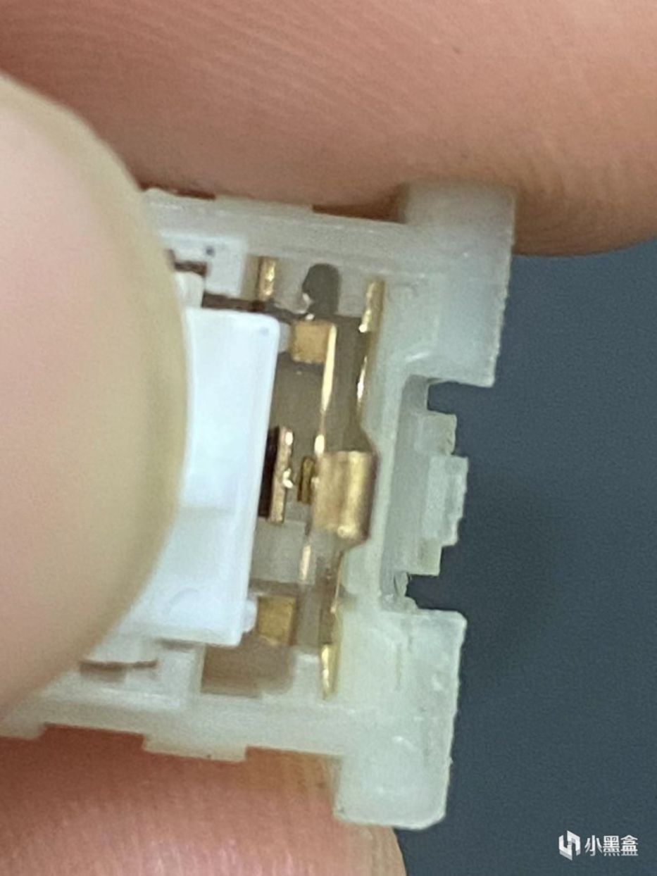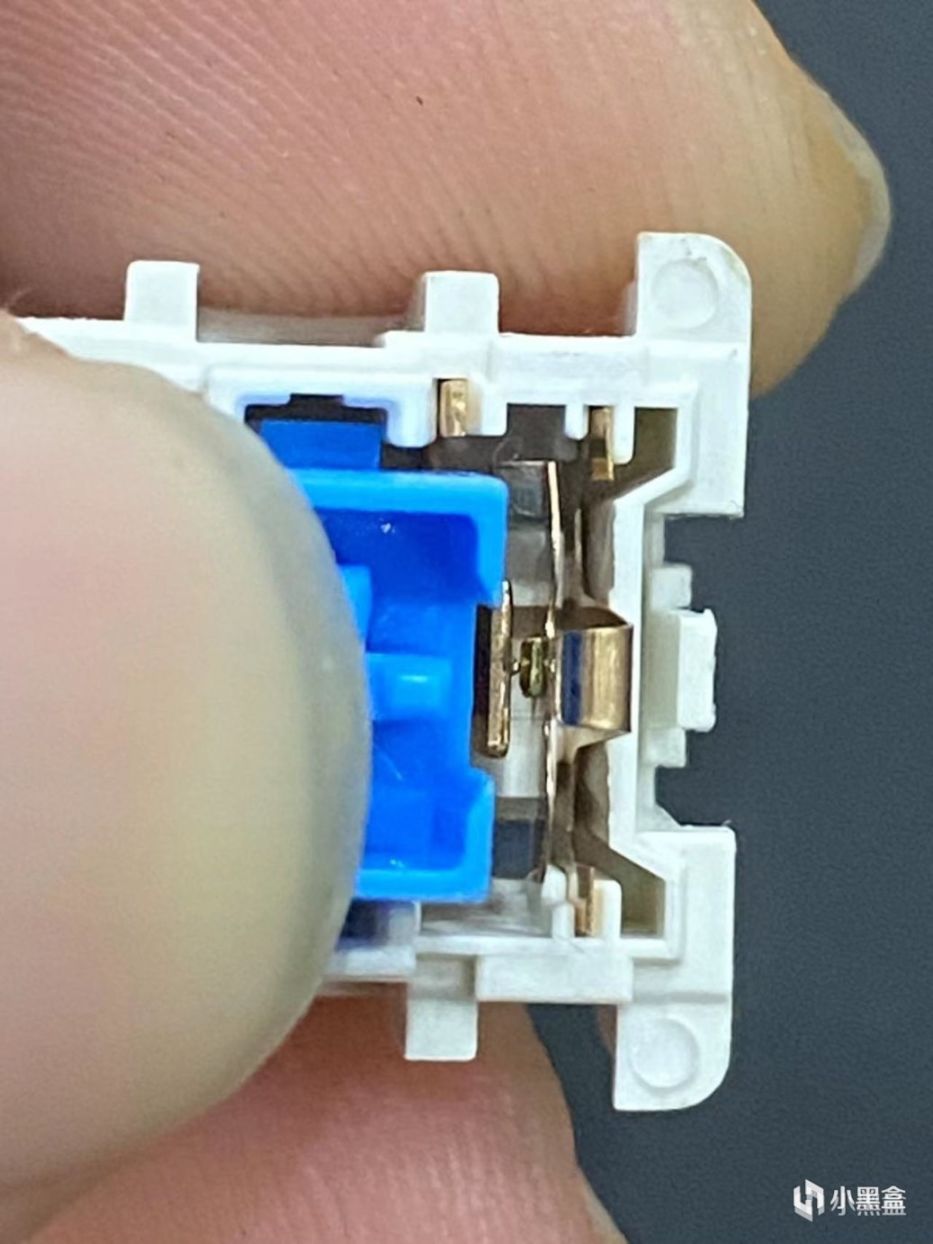 虽然各位看上面两个金属弹片是互相接触的,但是一般的轴芯都会带一个小突起,在轴芯在默认位置的时候会通过这个小突起把两个弹片给分开。