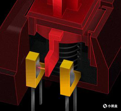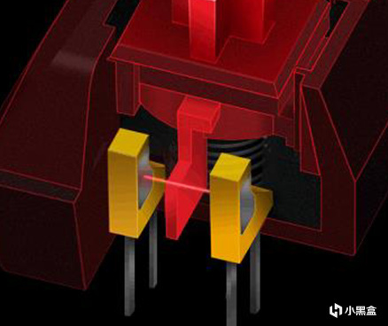 光轴结构其实和机械轴差不多。就是把金属的触片改成了红外光束,在没有摁下的时候,轴体下方会遮挡红外光,摁下之后则不会遮挡,实现通路触发。