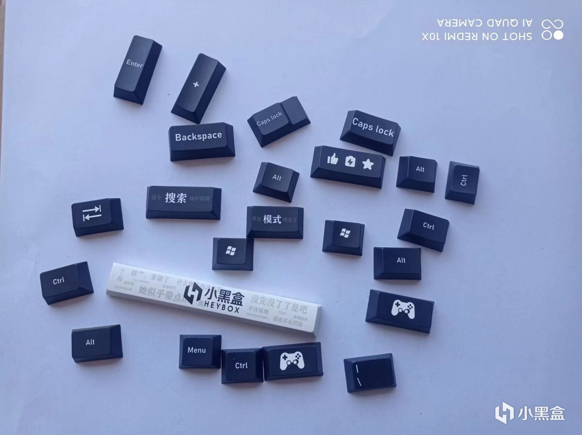 然后给各位看一下伦敦设计的黑盒键帽,还有出来的个别键帽的实物