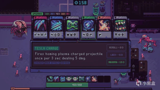 稍微可以评一下的幸存者like,用昼夜把节奏强行割断了,到点才一起升级,原本探图的可能性被割断了,怪物的压迫感也被时限降低很多(到点就直接强制地图清理了)。比较奇怪的缝合创新。