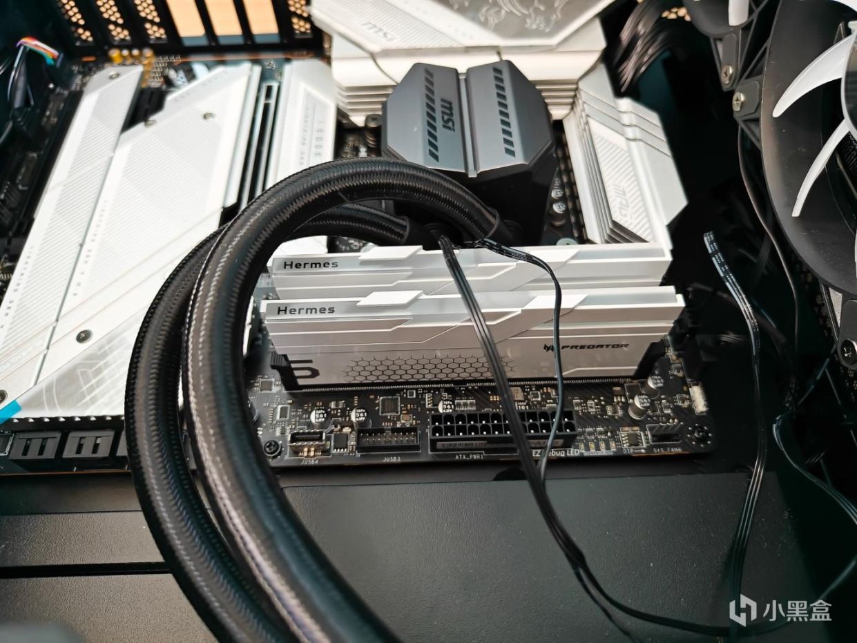 内存是宏碁掠夺者Hermes冰刃DDR5 6400内存,白色很漂亮的,顶部是灯条。