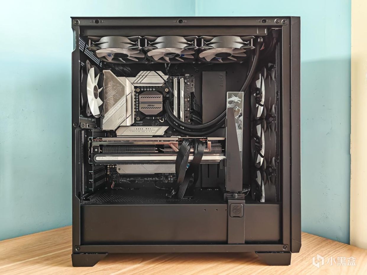 安装好之后还是很漂亮的。这款氪金枪 300R AIRFLOW新品中塔机箱,设计、做工的确是真的非常出色。它具有优秀的风道设计,支持从右到左水平风道和从下到上垂直风道,还可以实现专门给M.2 SSD散热的额外风道。支持大尺寸风扇,全机箱最多可安装12个风扇。出厂预装4个ARGB风扇。