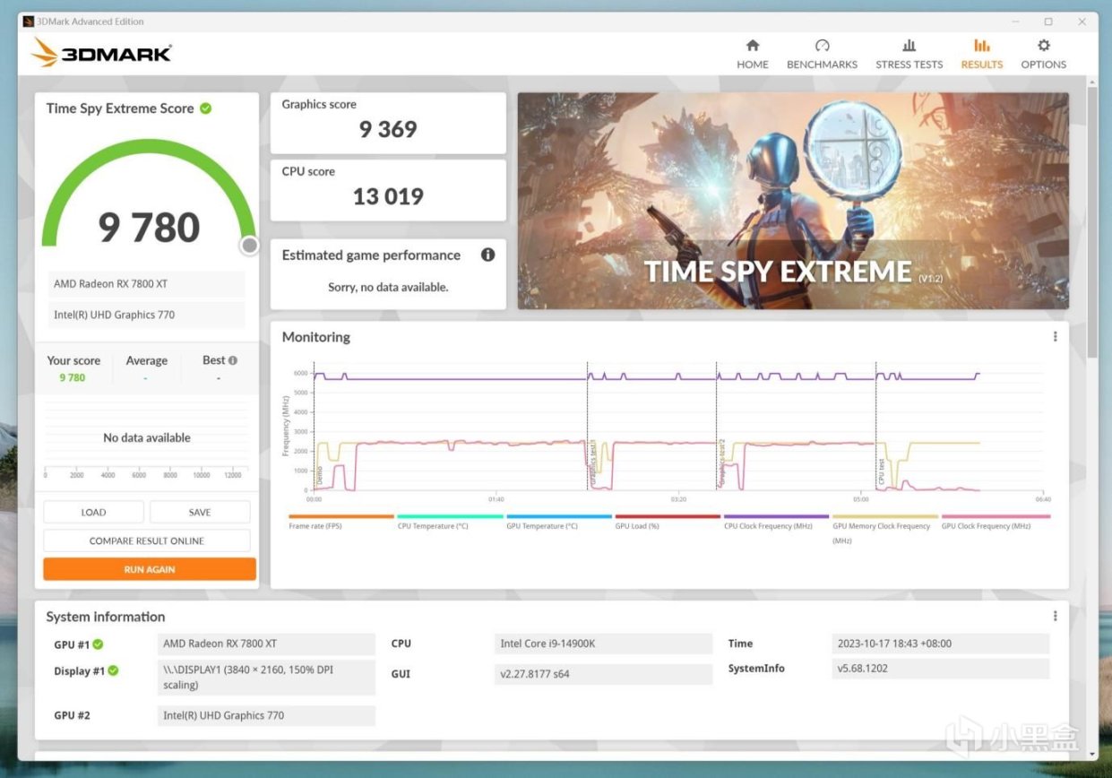 TIME SPY EXTREME 4K测试,其中CPU得分13019。