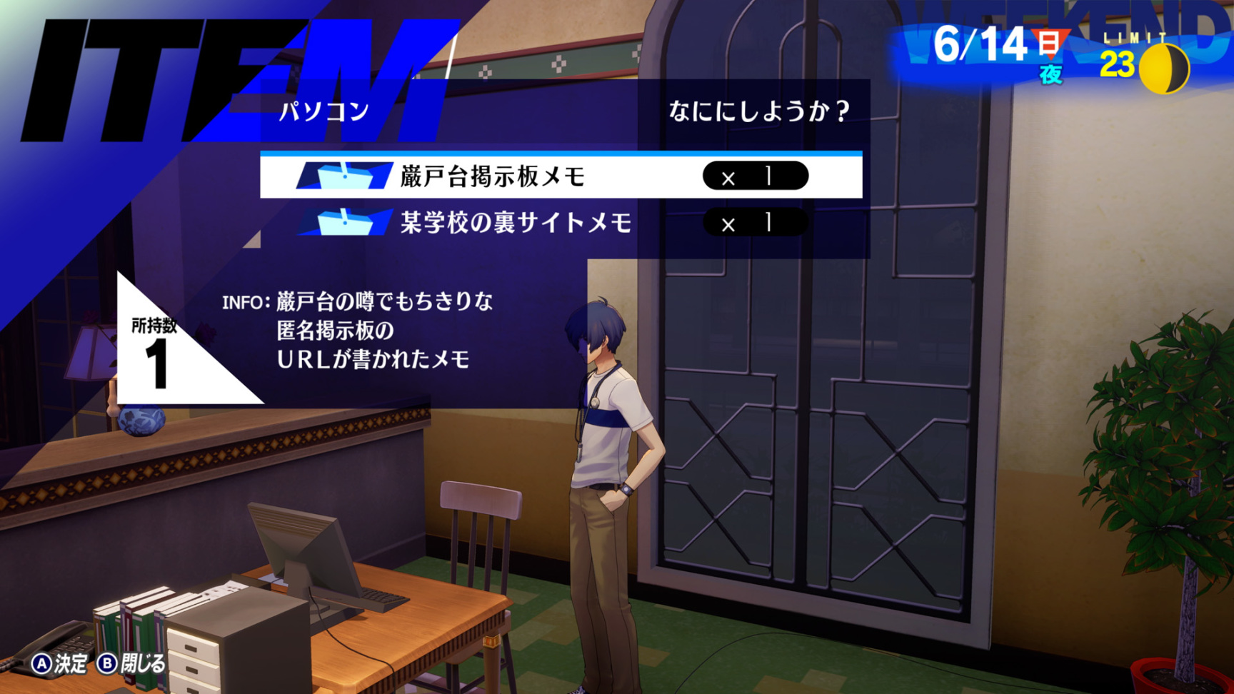 可通过宿舍休息区的公用电脑使用各种软件进行学习或是收集情报。除了提升个人能力值之外,还可学习各种有利于战斗和探索的技能。