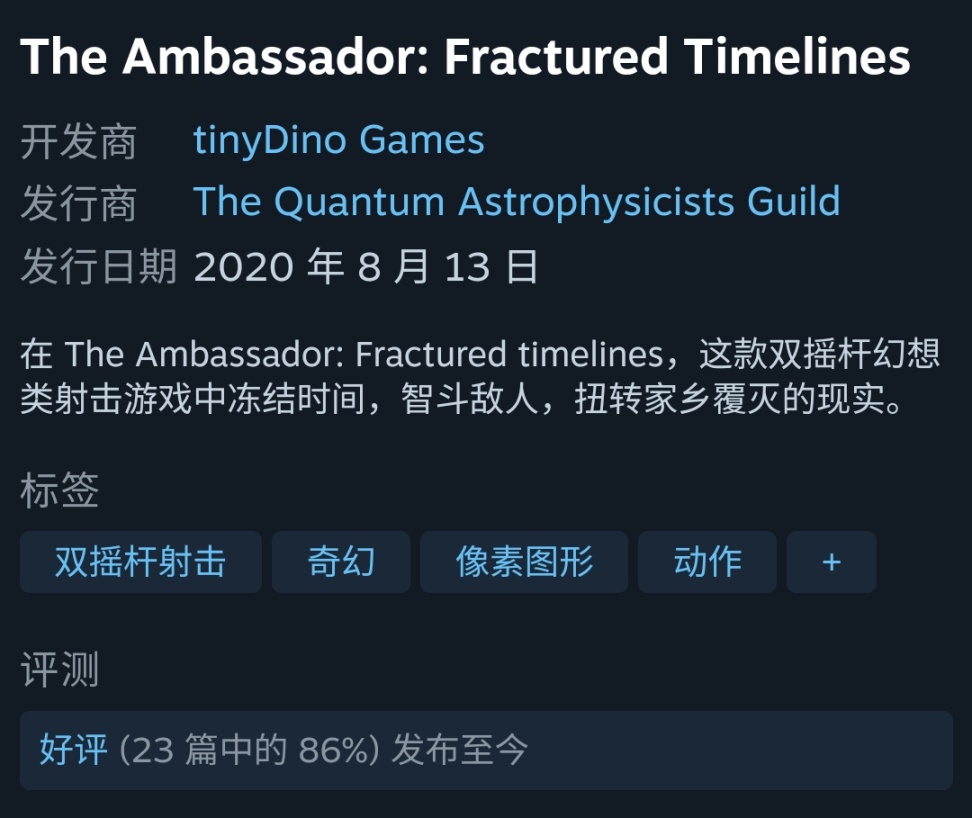 4.The Ambassador: Fractured Timelines 史低-75% 截止10.18 国区12.5r A区44.99比索 土区6.25里拉