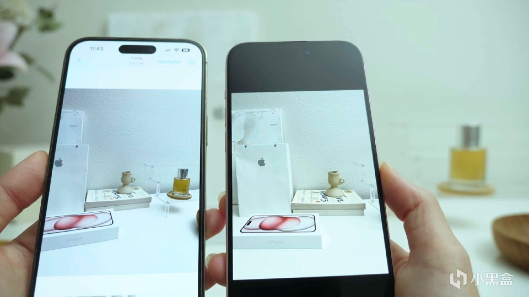新工藝把顏色放到玻璃背板裏,確實是有白裏透紅、粉粉嫩嫩的效果,可惜了這倆蛤蟆眼似得鏡頭破壞了美感。這次的主攝鏡頭也升級到了14 Pro同款的4800W,還有了兩倍光學畫質變焦。