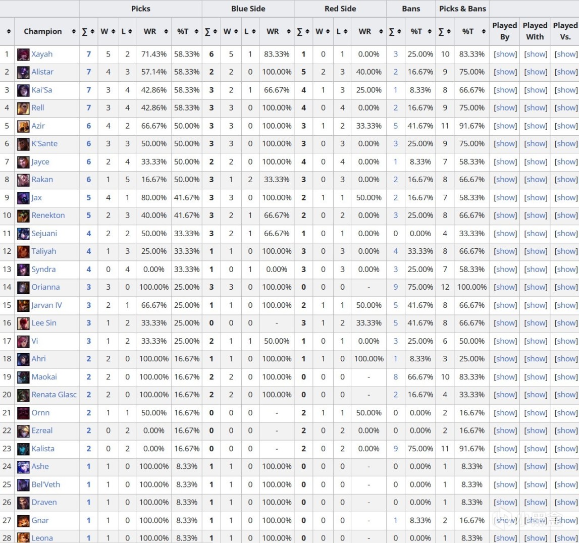 英雄BAN PICK上來看 (可能後面幾場數據還沒加上來)