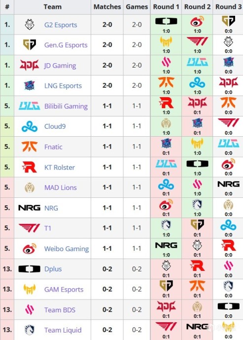2-0和0-2的隊伍將迎來自己的生/死局,均爲BO3。