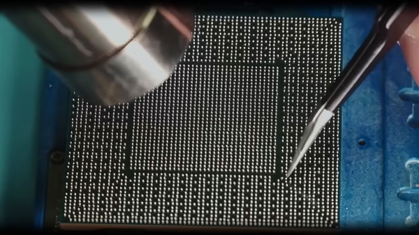 首先是一块变砖无法点亮的非公版RTX 4090,最初怎么都找不到问题何在,后来拿掉AD102 GPU核心芯片,赫然发现GPU芯片与PCB电路板之间的焊点,竟有100多个都脱落了!