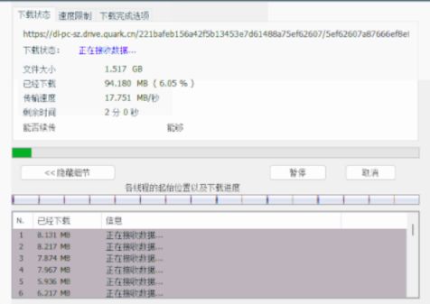下载完这两款工具之后,直接打开网页版夸克网盘,找到要下载的文件点击其下载按钮,这时候会直接调出idm下载器下载