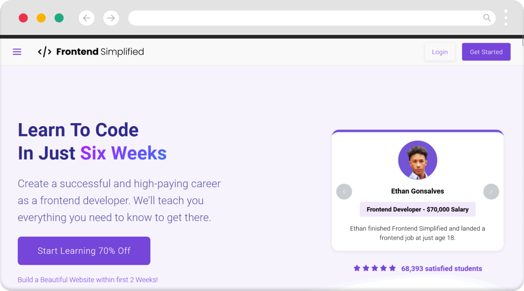 学习者可以在六周内学习网页前端开发的全流程(HTML、CSS、JavaScript、React、Git等技术),一个目标性强的路线图和项目可以让你更好地掌握编程知识,Frontend Simplified还提供了上万人的Discord社区,学习者可以加入社区进行学习交流。