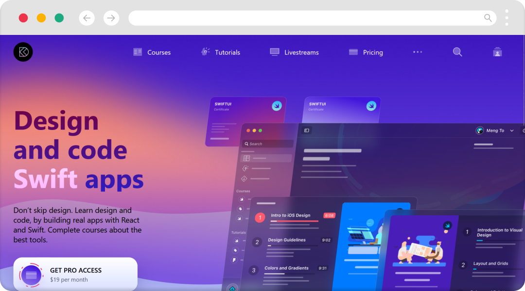 Design+Code主要提供手册和视频让学习者如何将设计用SwiftUI进行实现,iOS开发必备。除了SwiftUI, 还提供了React、Figma、Sketch等教程,适合设计师将设计想法用编程语言表达出来。