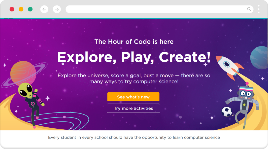 该网站为4-18岁不同年龄阶段的学习者提供计算机科学基础速学课程,如果你没时间参加整个课程,试试为所有年龄的学生设计的一小时课程。网站学习以卡通内容解释计算机科学,生动有趣,有利于激发学习者的编程兴趣。