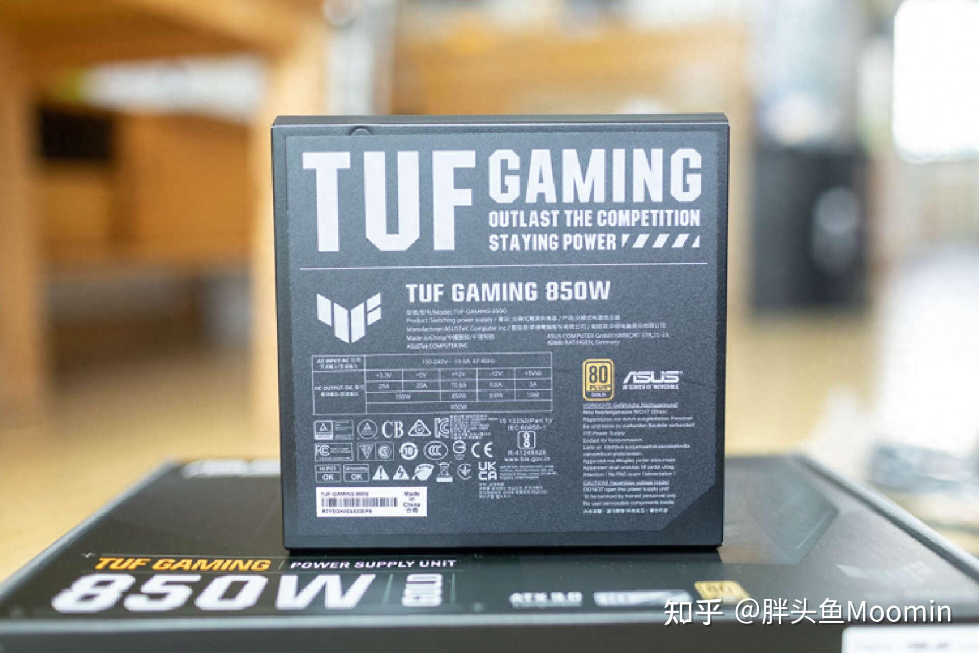 電源的另一側除了能看到TUF GAMING 850W的字樣外,還能找到立體結構的TUF標識,金屬質感帶有反光的設計,識別度一流,非常適合用來展示。
