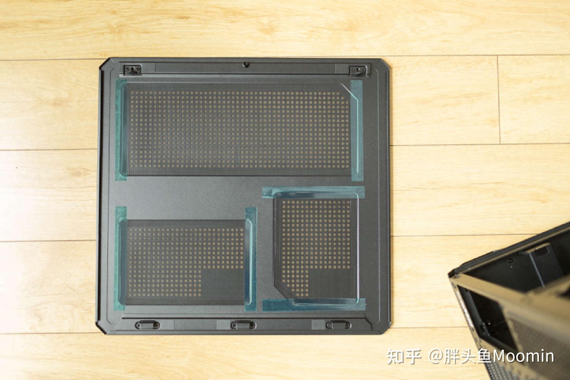 機箱右側面板內部對應散熱柵格位置還提供了三塊獨立的磁吸式防塵網,防護相當周全。