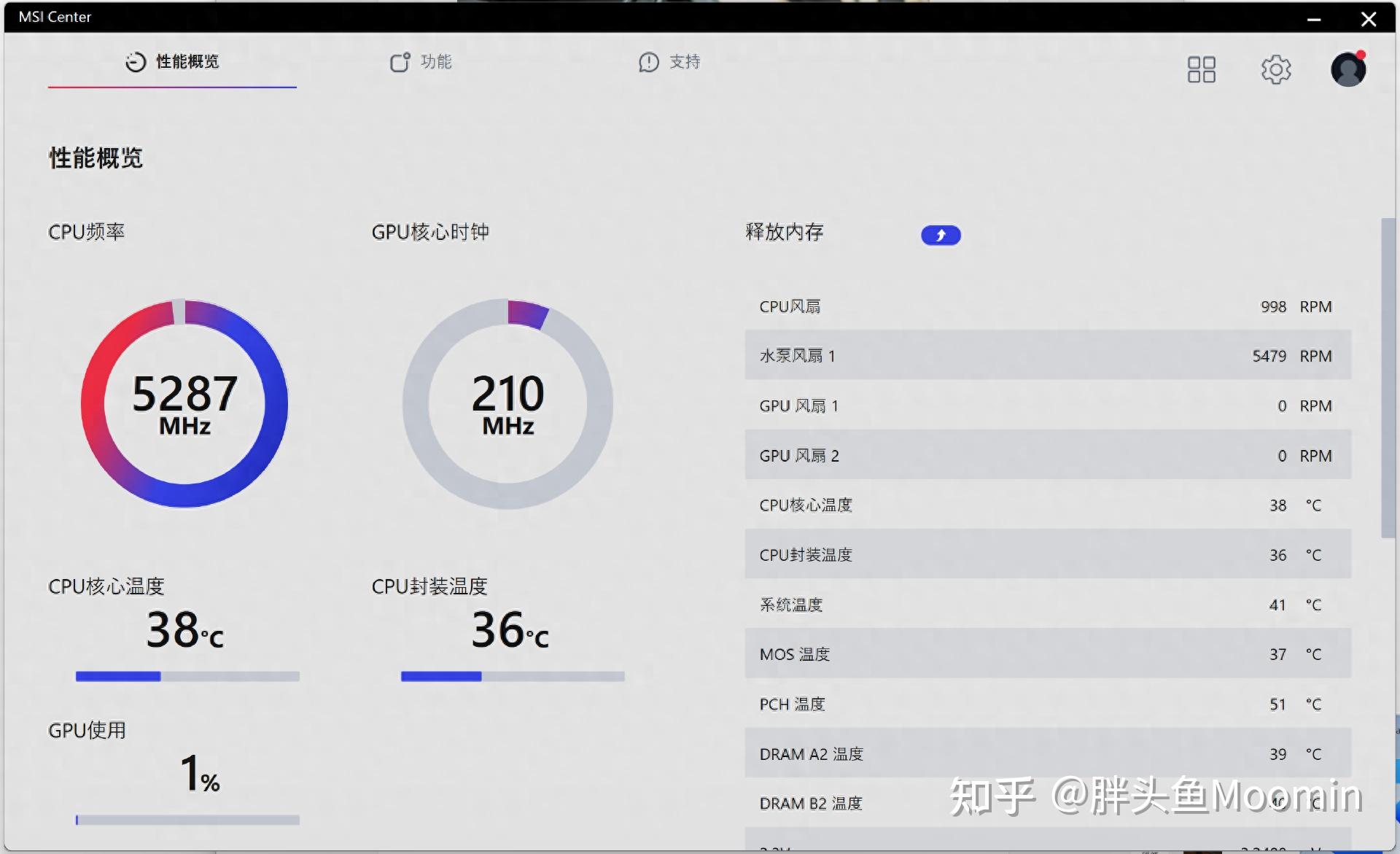因爲是760芯片組帶13700K,我直接在BIOS開啓默頻模式後,FPU溫度可以穩定在63攝氏度。這款TUF破冰手II代的噪音表現令人相當驚訝,在極工作模式下,依然完全聽不到噪音。外置的獨立水泵顯示一直工作在5400RPM,但是基本除了開機偶爾有水聲,其他時候都很安靜。