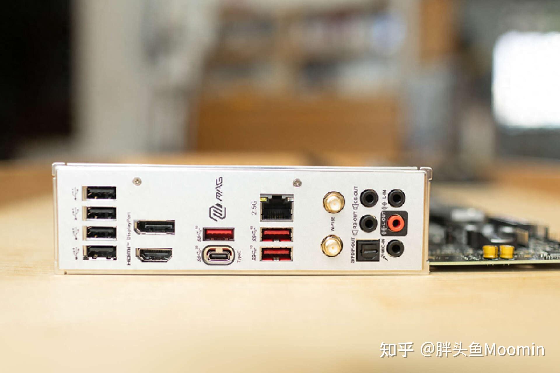 接口方面,微星B760M迫擊炮II代採用了一體IO面板,接口數量和種類也不弱於旗艦級產品,不僅具備數量喜人的USB2.0,USB3.2 GEN2數量,USB3.2 GEN2*2接口,豪華的7.1音頻接口和光纖接口也一應俱全。網絡方面更是升級了2.5G規格和WIFI 6E無線網絡接口,並隨機標配了鯊魚鰭天線。