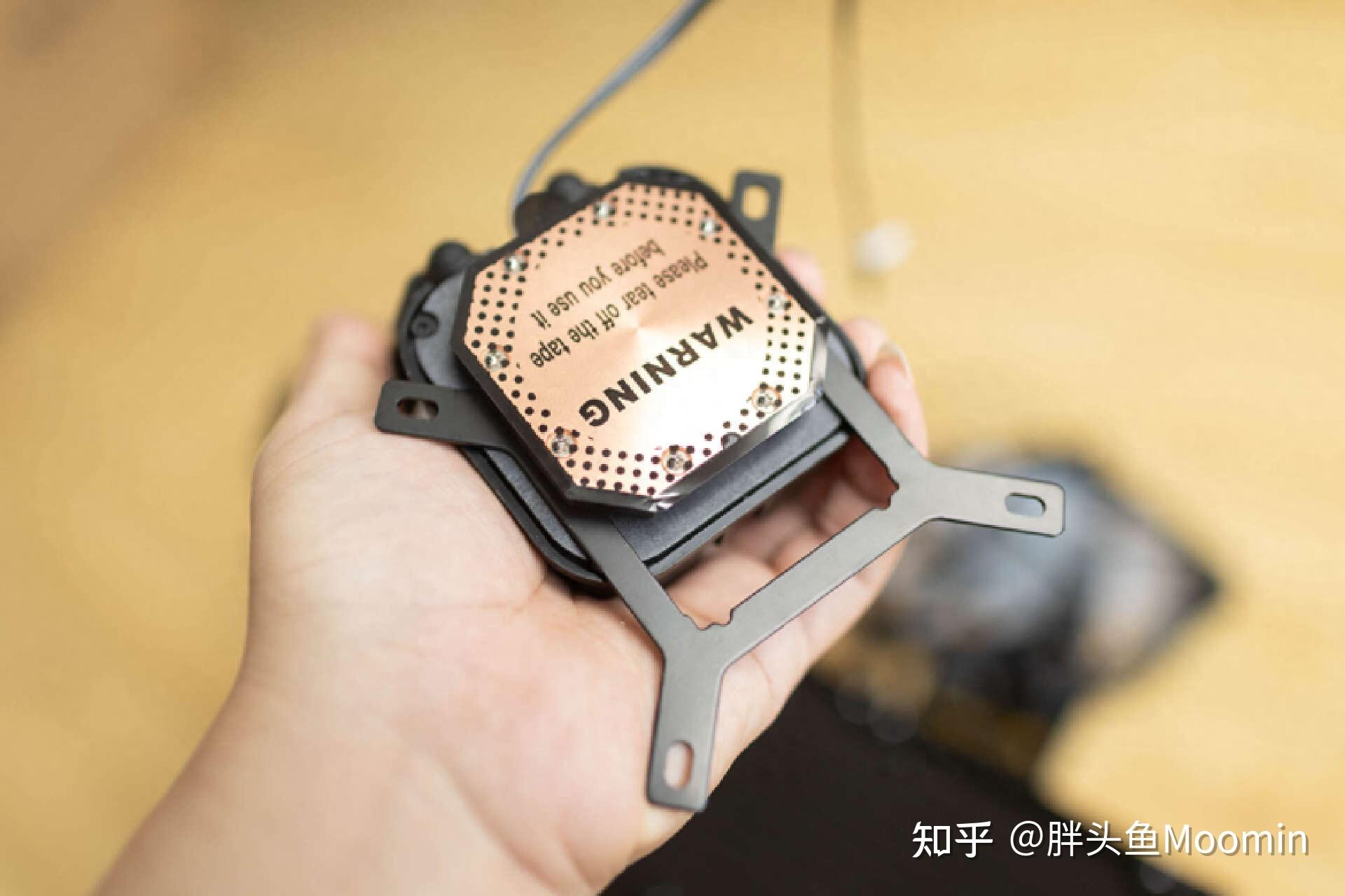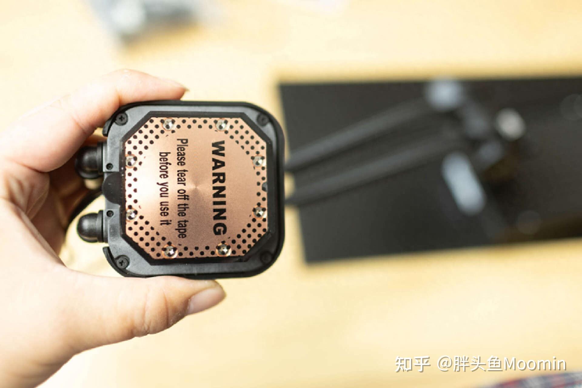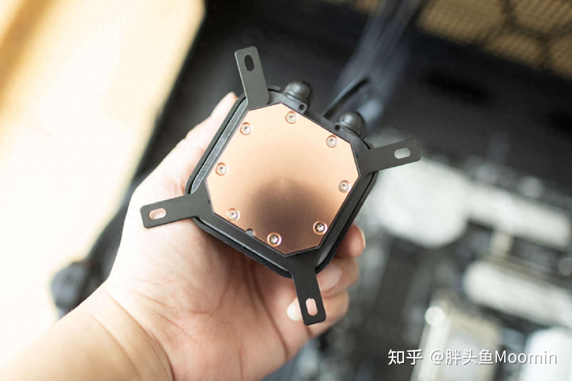 冷頭底部爲純銅底座,由於不內置水泵,所以冷頭重量感覺十分輕盈。